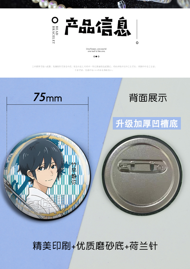 尺寸 75mm镭射双闪吧唧,58mm镭射双闪吧唧