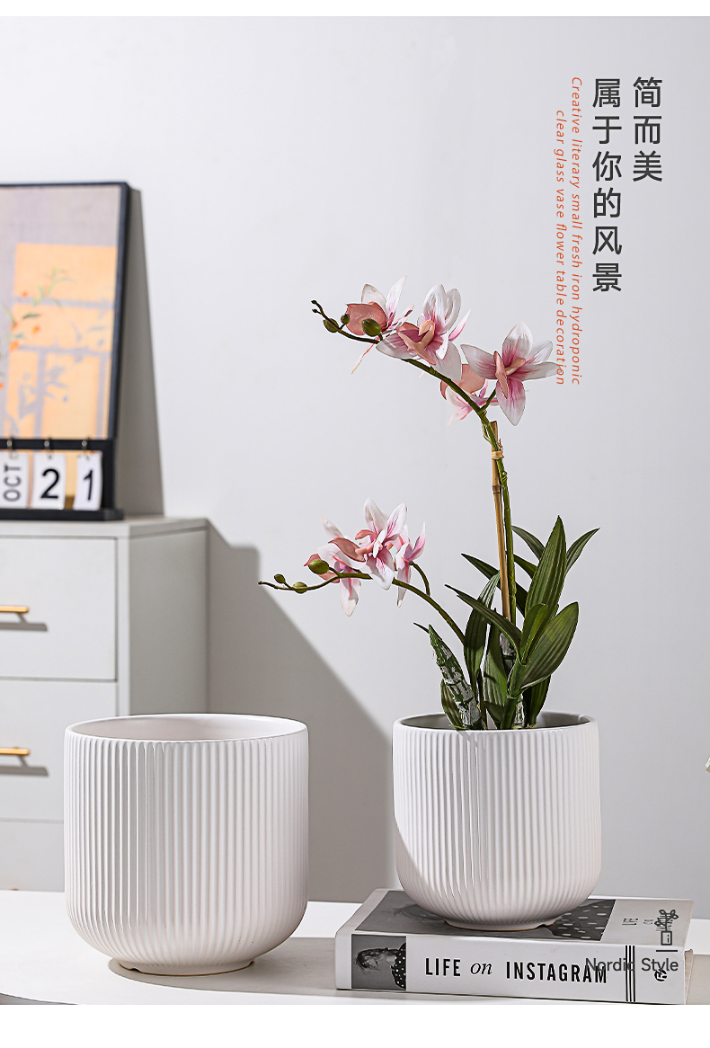 花盆陶瓷家用白色简约客厅蝴蝶兰专用轻奢高级大号口径虎皮兰盆栽