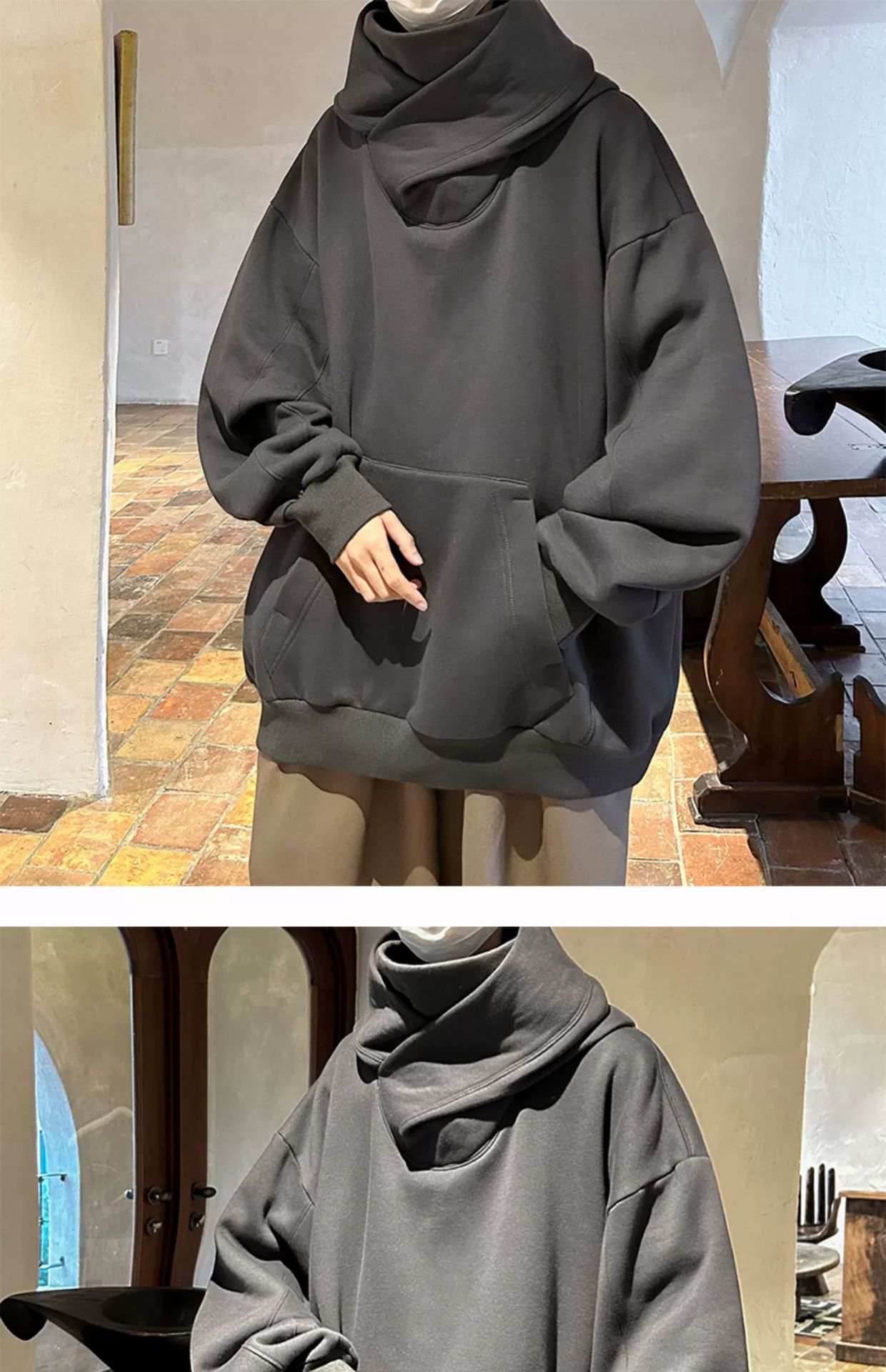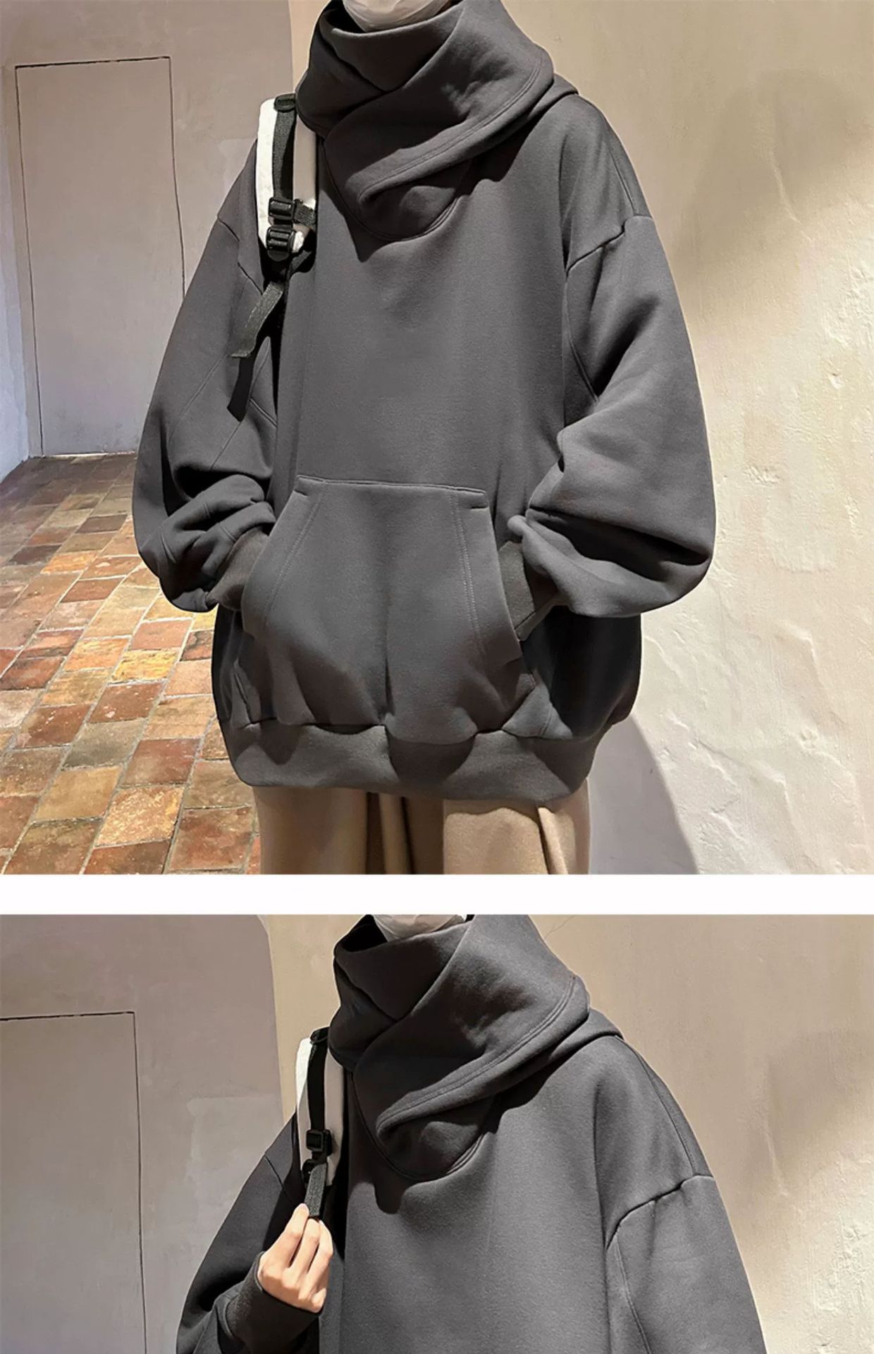 社恐黑武士冲锋卫衣男秋冬款重磅机能外套oversize美式高领连帽衫