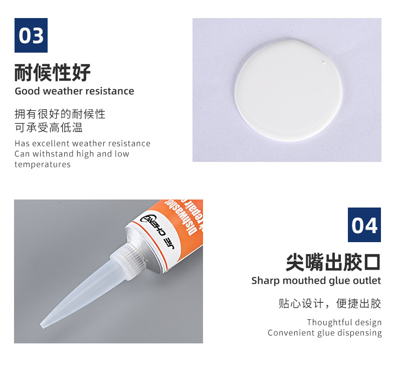 JC-809 高温および低温耐性シーラントシリコーン結合防水シリコーン金属ガラスプラスチックセラミック接着剤
