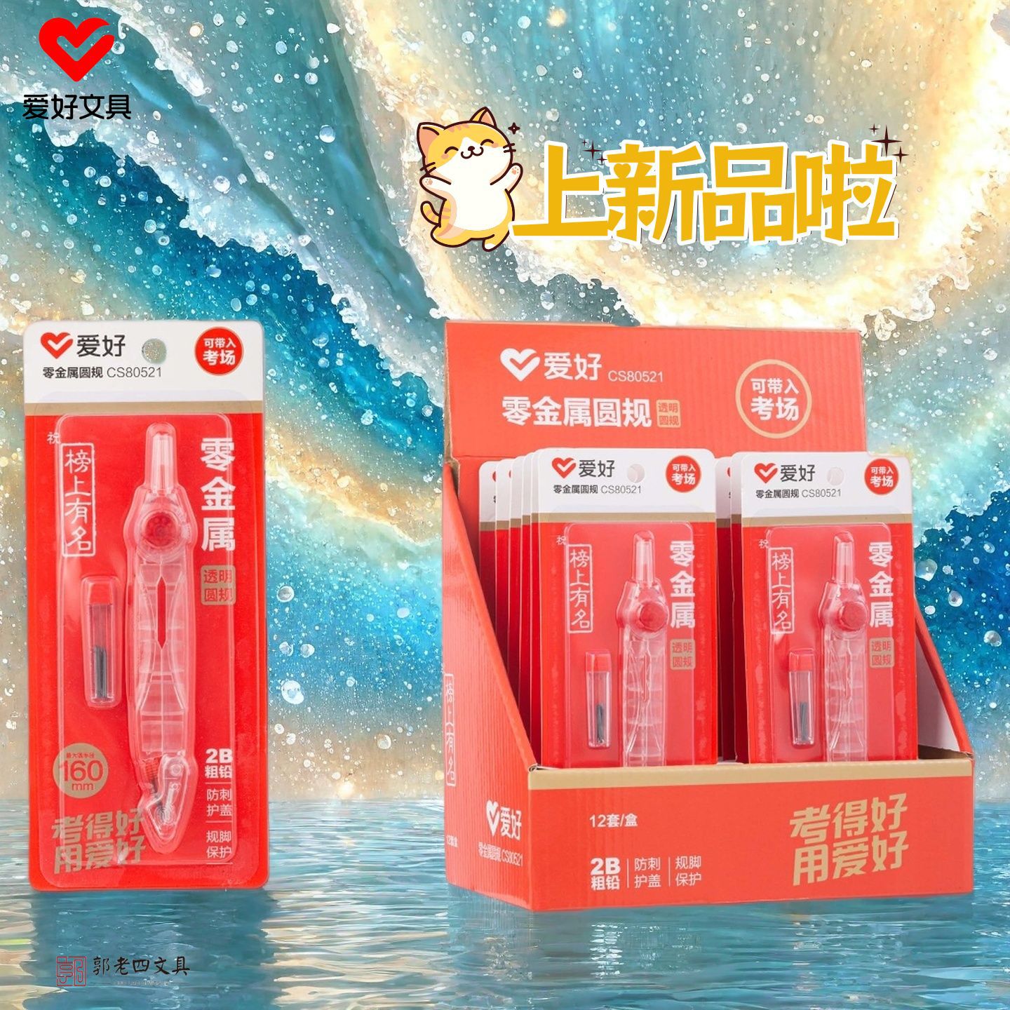 爱好文具新品CS80521零金属圆规套装学生考试绘图塑料圆规批发