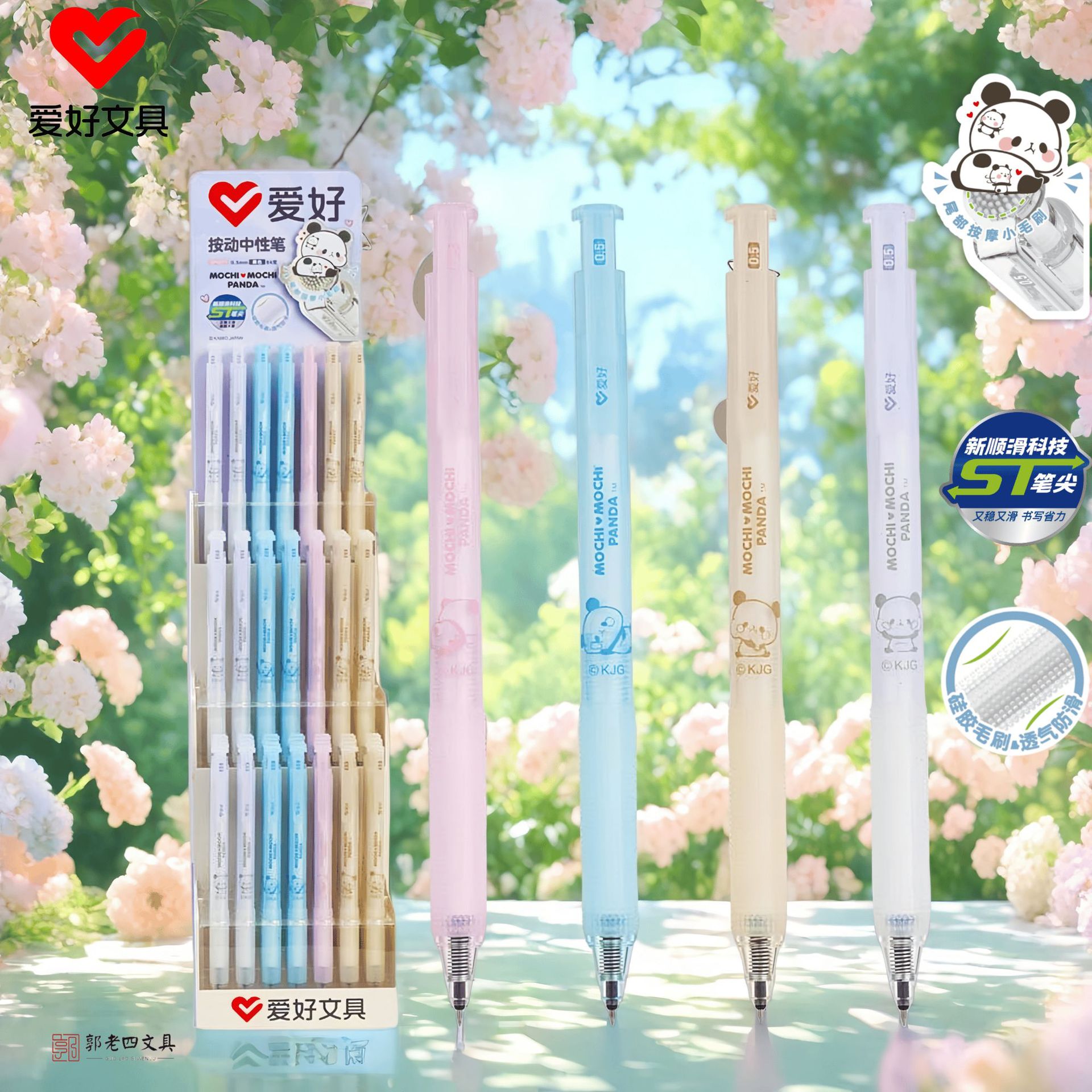 爱好文具新品GP4271熊猫魔奇胖ST笔尖按动中性笔黑色刷题笔批发