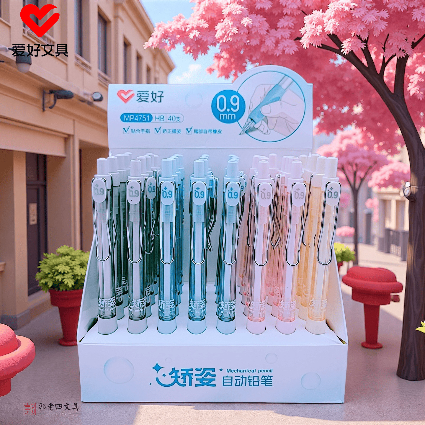 爱好文具新品MP4751矫姿0.9自动铅笔学生练字写字笔活动铅笔批发