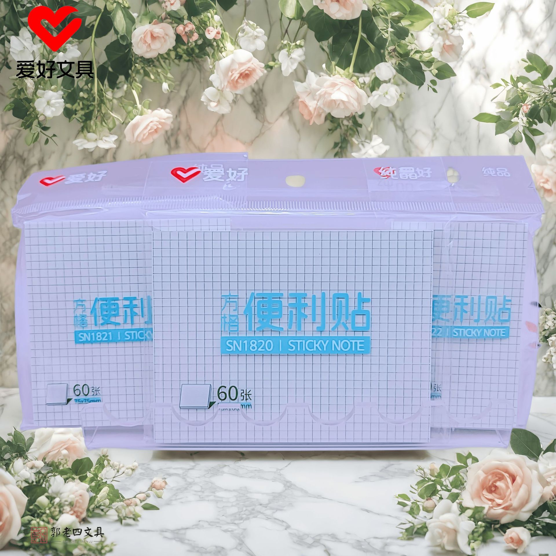 爱好文具新品SN1821方格便利贴纯品系列60页百事贴简约白色批发