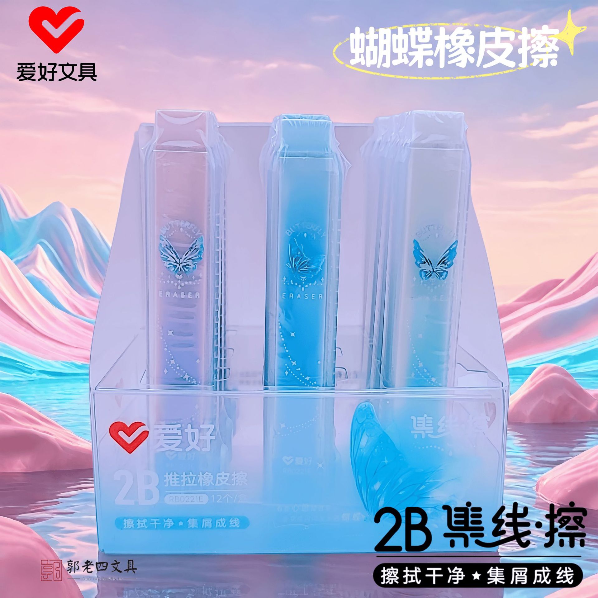 爱好文具新品RB0221E蝴蝶2B推拉橡皮擦集线擦高颜值擦胶铅笔擦