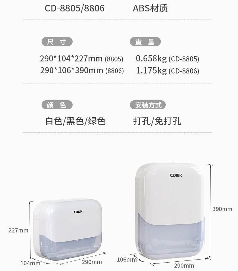 颜色 CD-8805钻石白,CD-8805曜石黑,CD-8805松石绿,CD-8806钻石白,CD-8806曜石黑,CD-8806松石绿