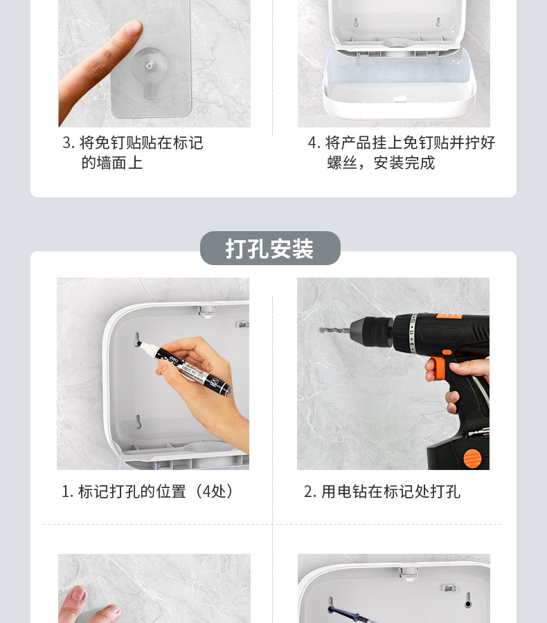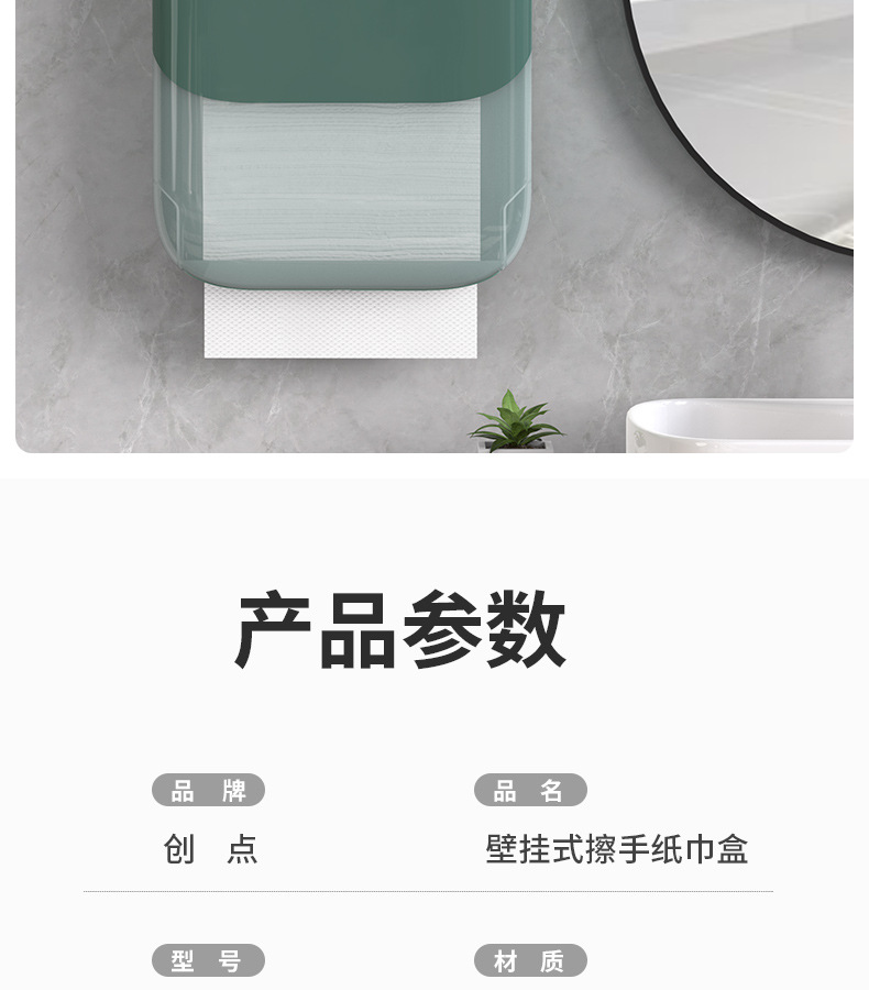 创点卫生间擦手纸巾盒挂壁式厕所抽纸盒免打孔亚马逊跨境工厂直销