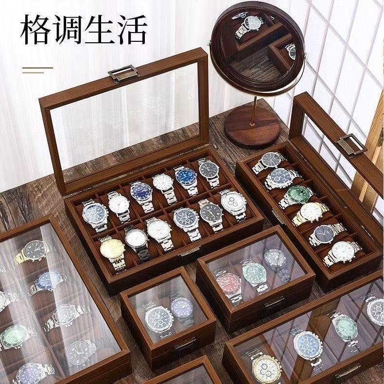 レトロブラックウォールナット木目調時計収納ボックス高級サンルーフ家庭用大容量腕時計ディスプレイ