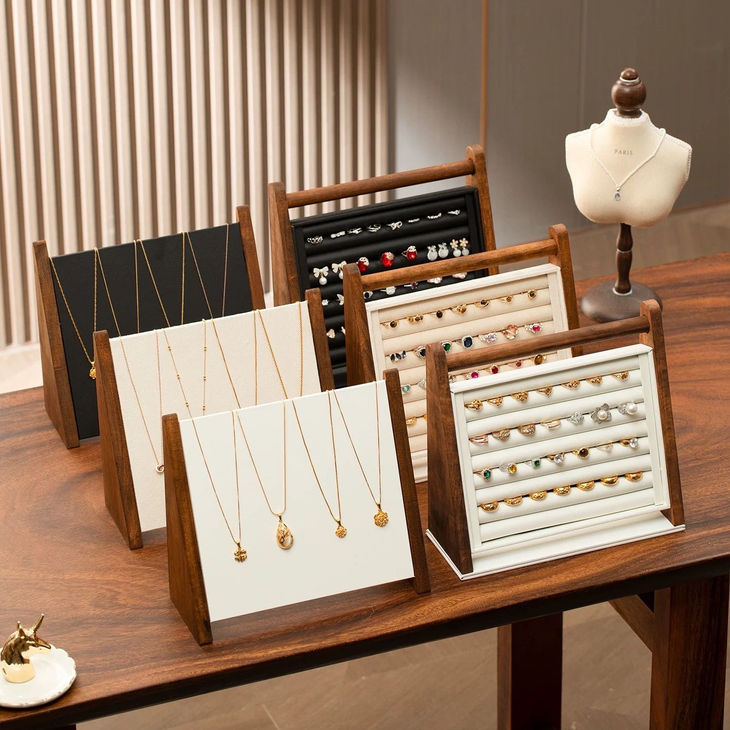 跨境首饰陈列架珠宝展示架实木桌面立式项链木质手镯高级感收纳支