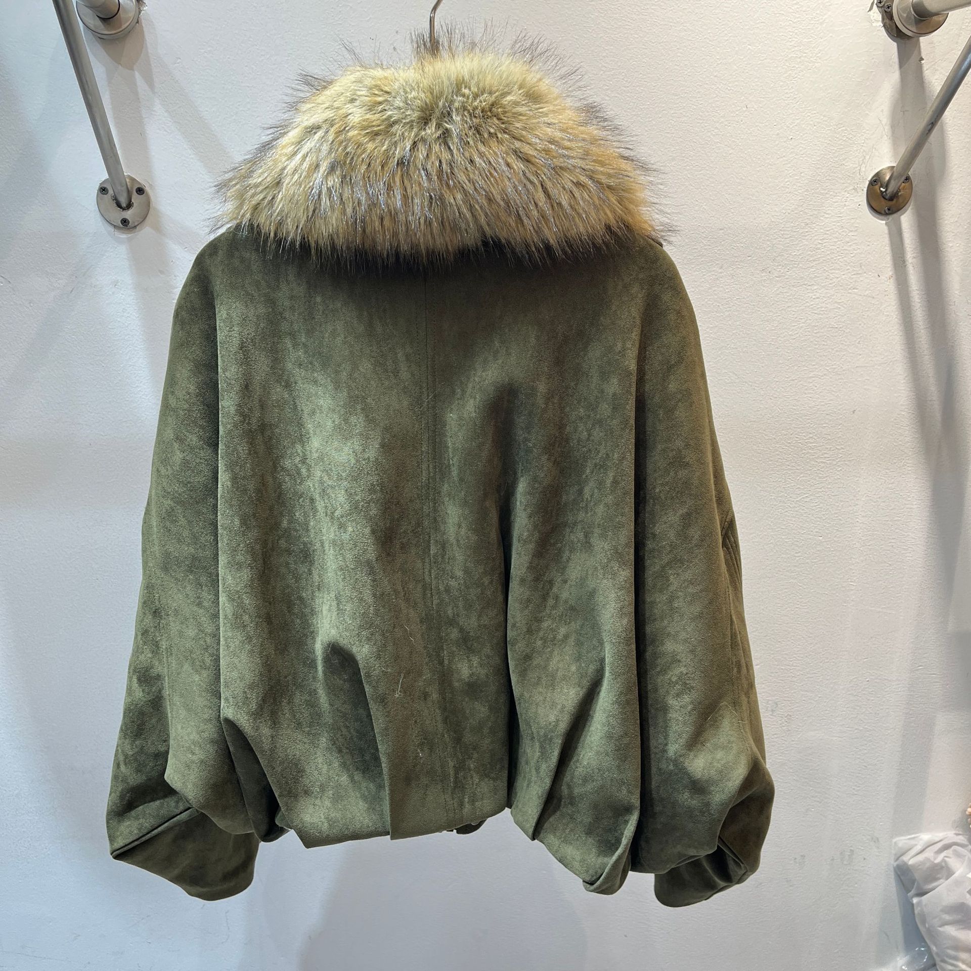 欧美风高级感可拆卸毛领麂皮绒加厚棉服外套女慵懒感短款夹克潮