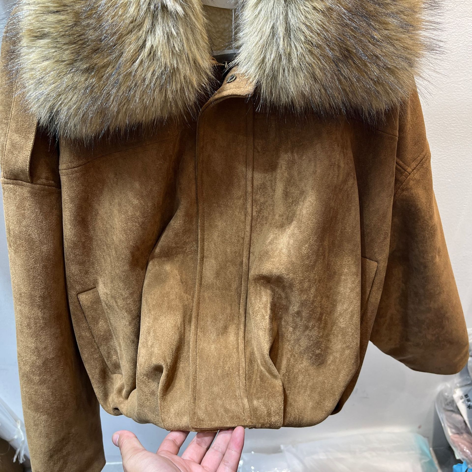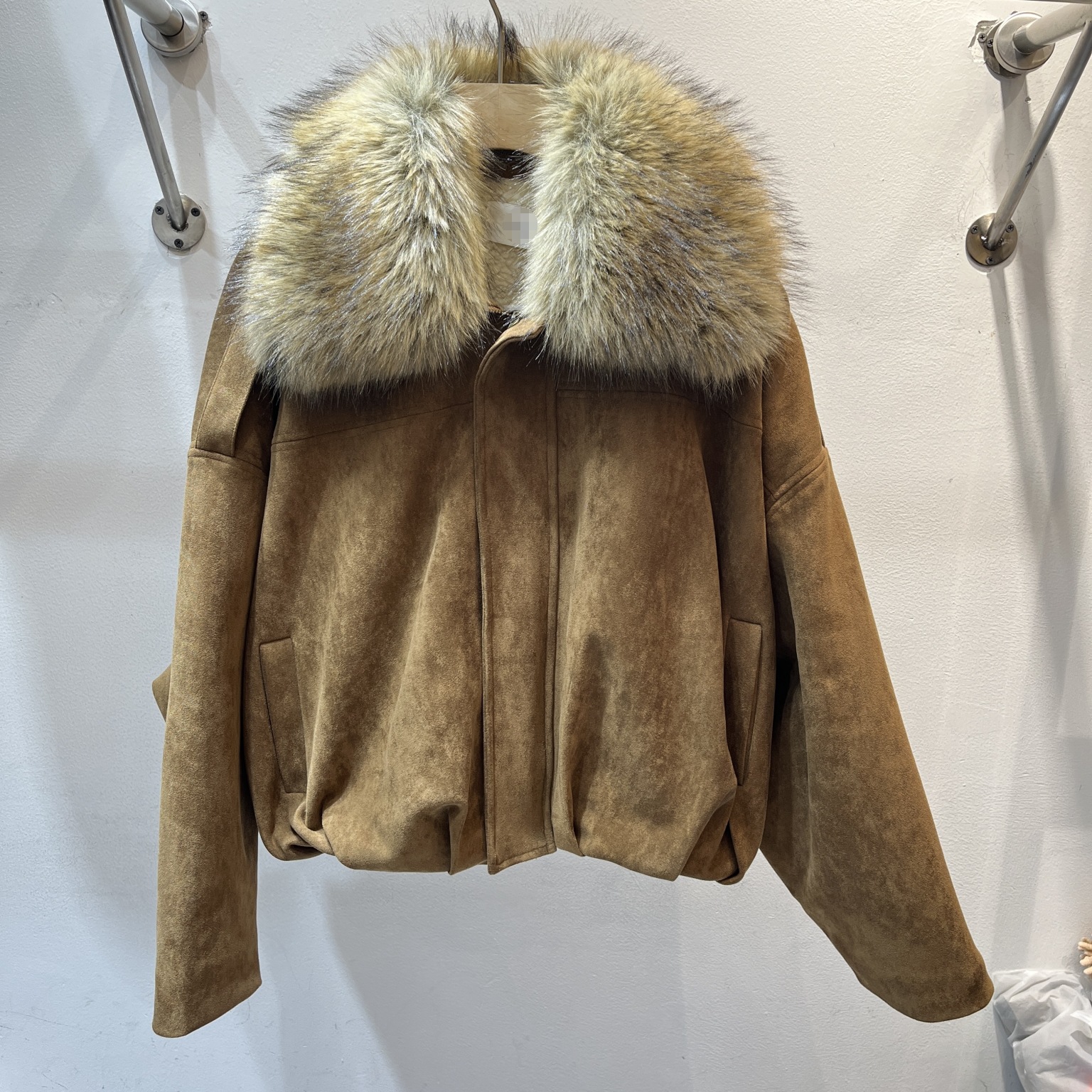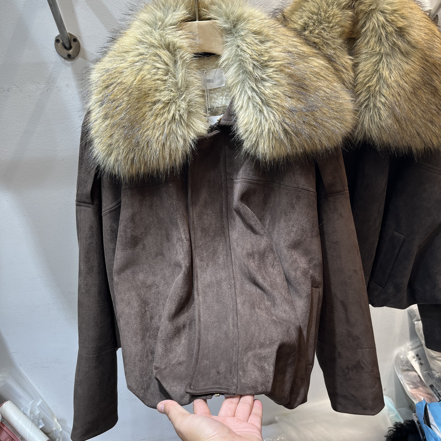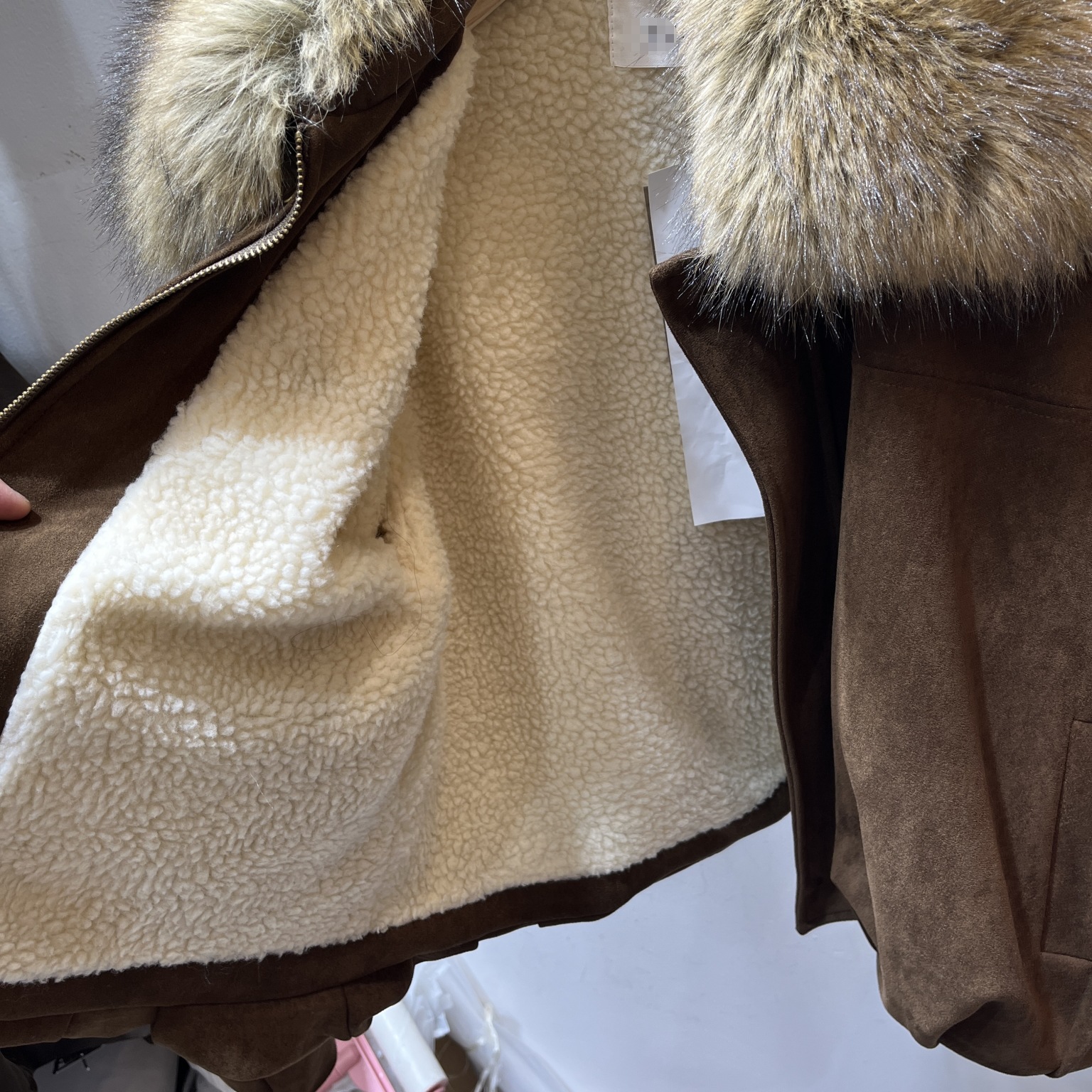 美拉德复古麂皮绒派克服皮草外套女2025秋冬高级感夹克上衣