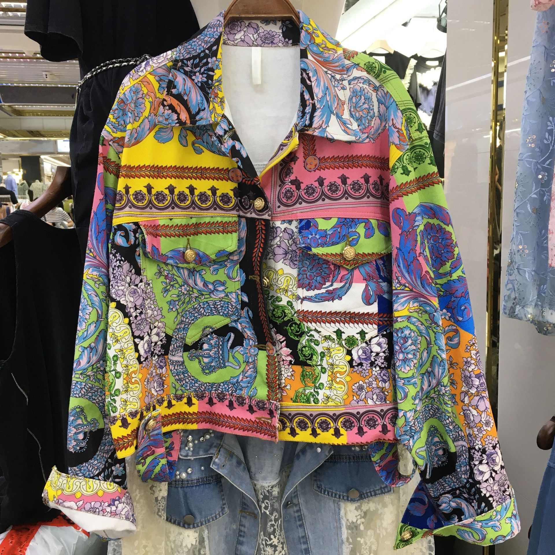ヨーロッパステーション 2025 春と秋の新ファッションレトロ西洋スタイル韓国スタイルプリント小さなデニムショートジャケット女性のための