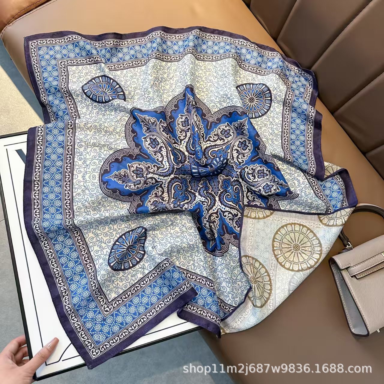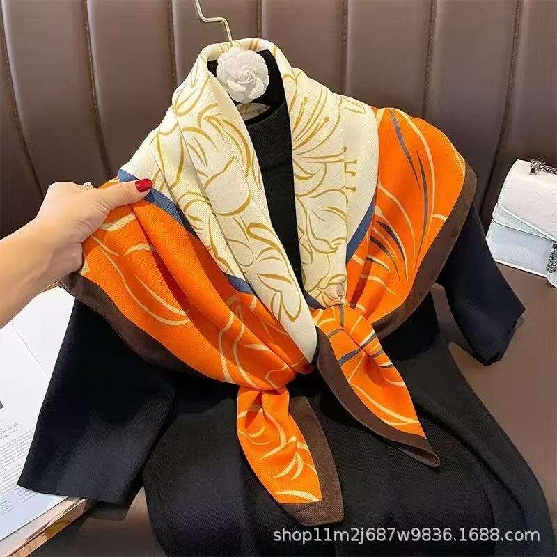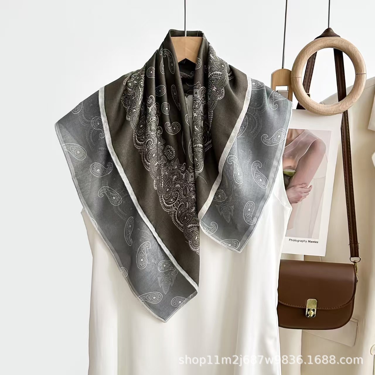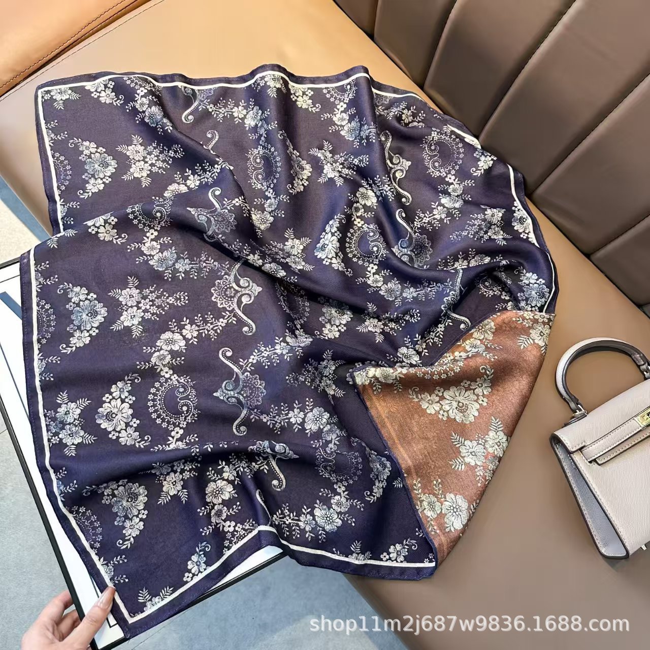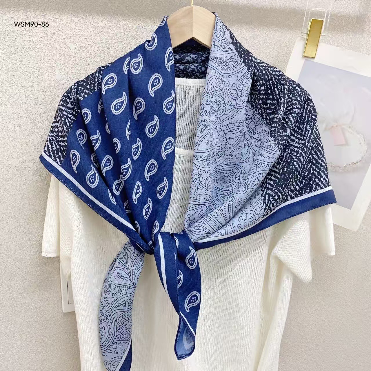 新款数码印花90方巾丝毛质感丝巾双面头巾保暖亲肤女装饰围巾