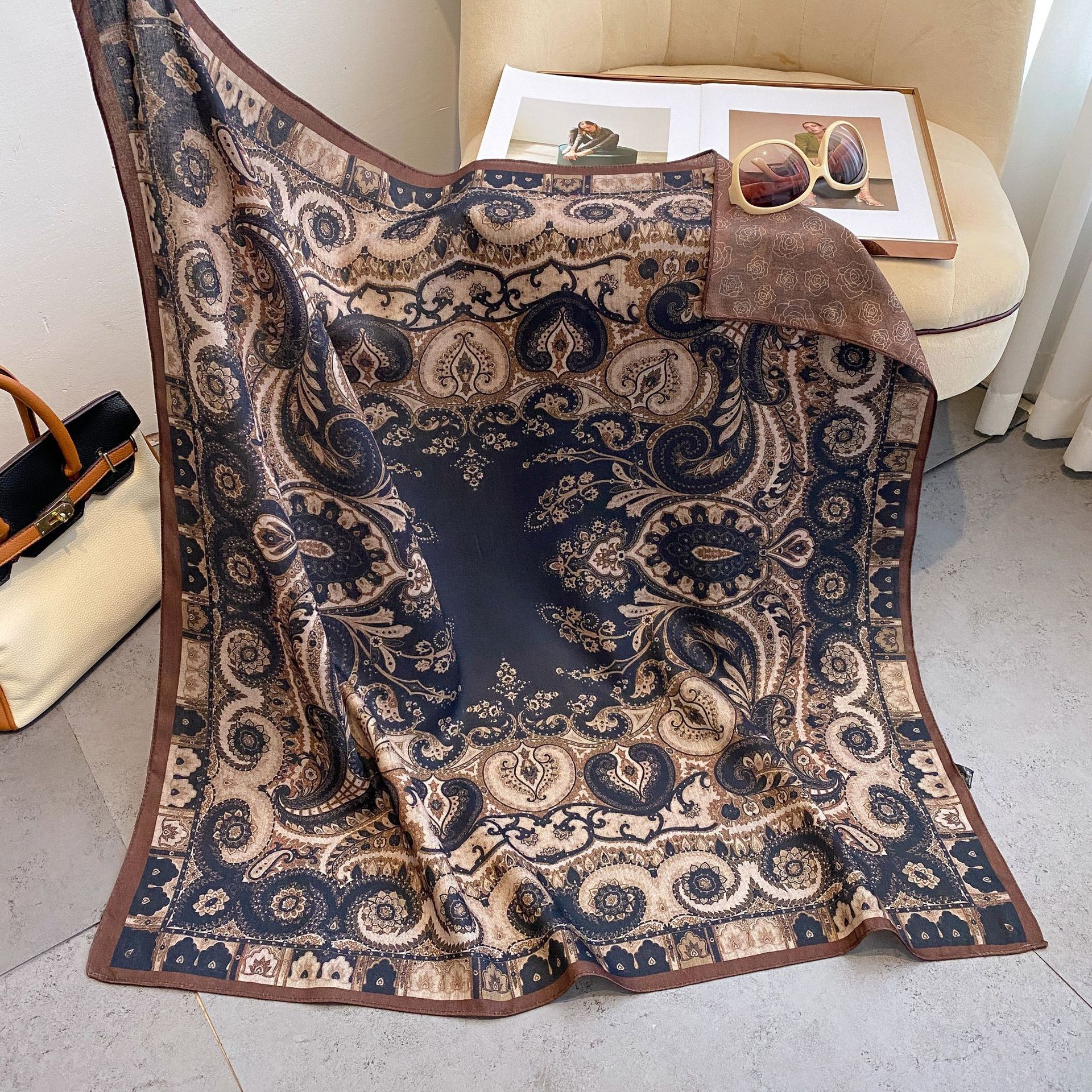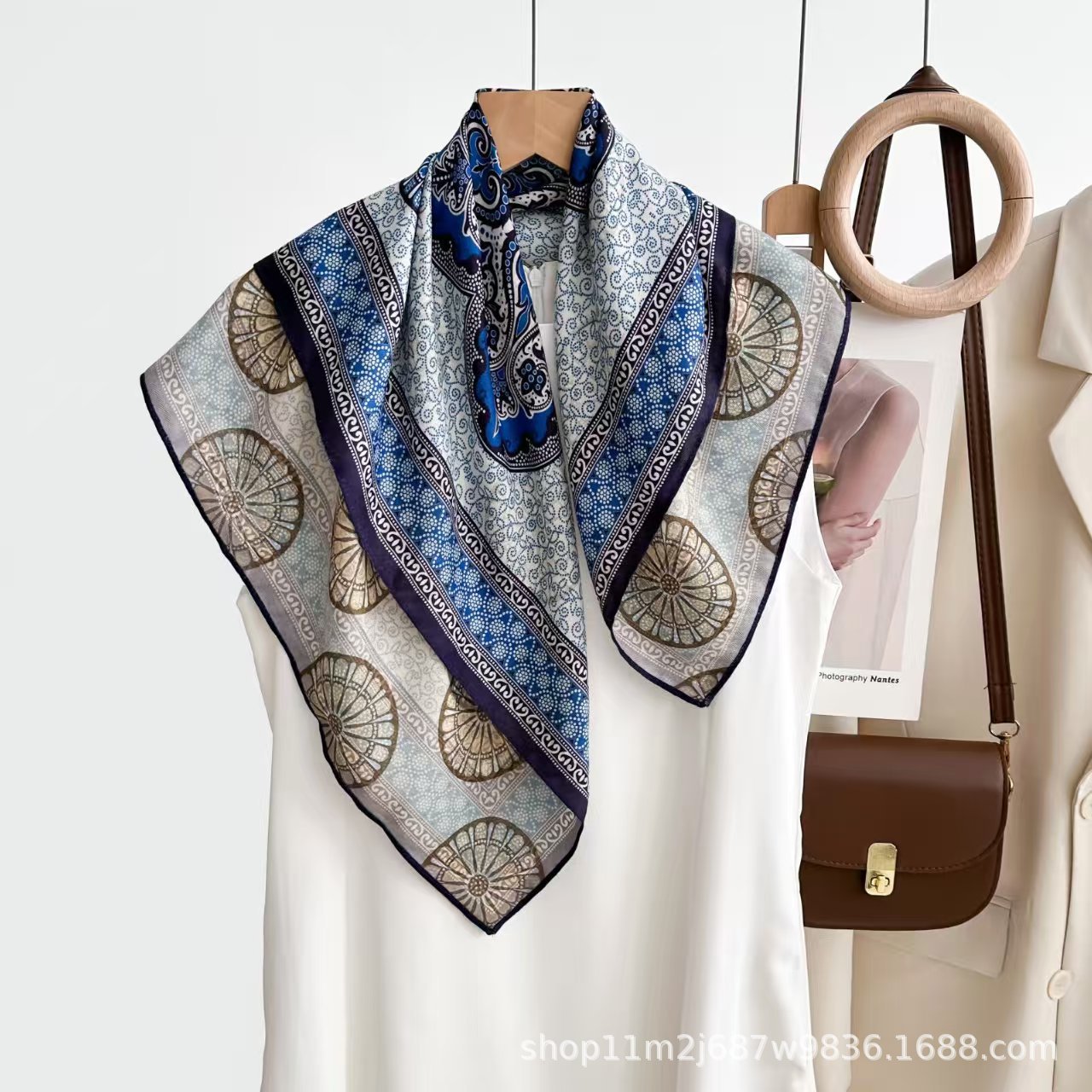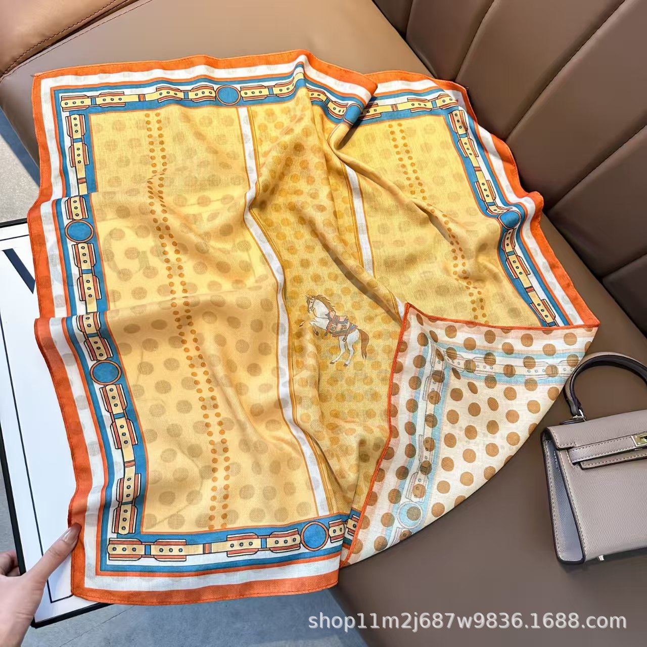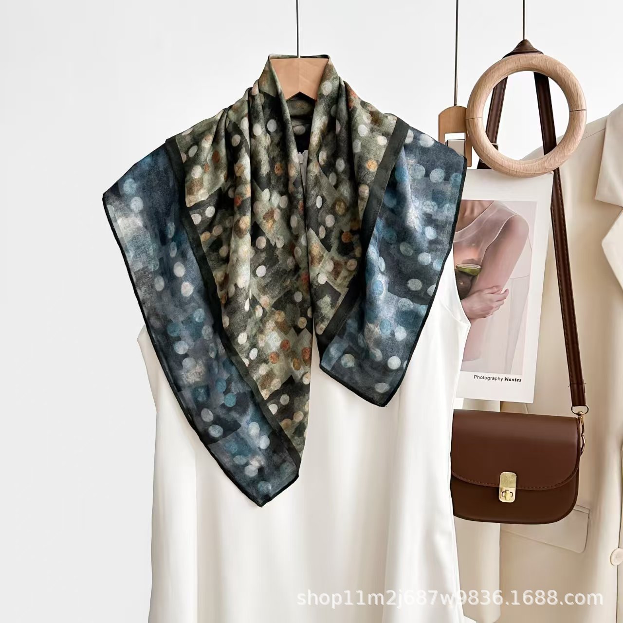 新款数码印花90方巾丝毛质感丝巾双面头巾保暖亲肤女装饰围巾