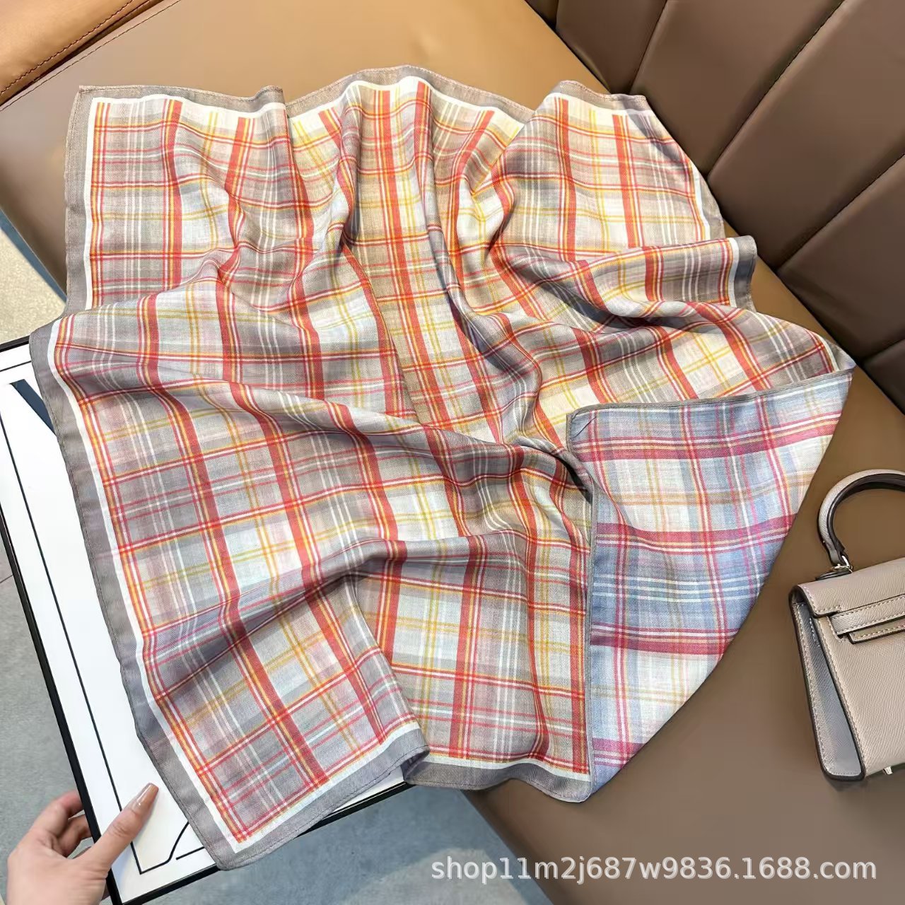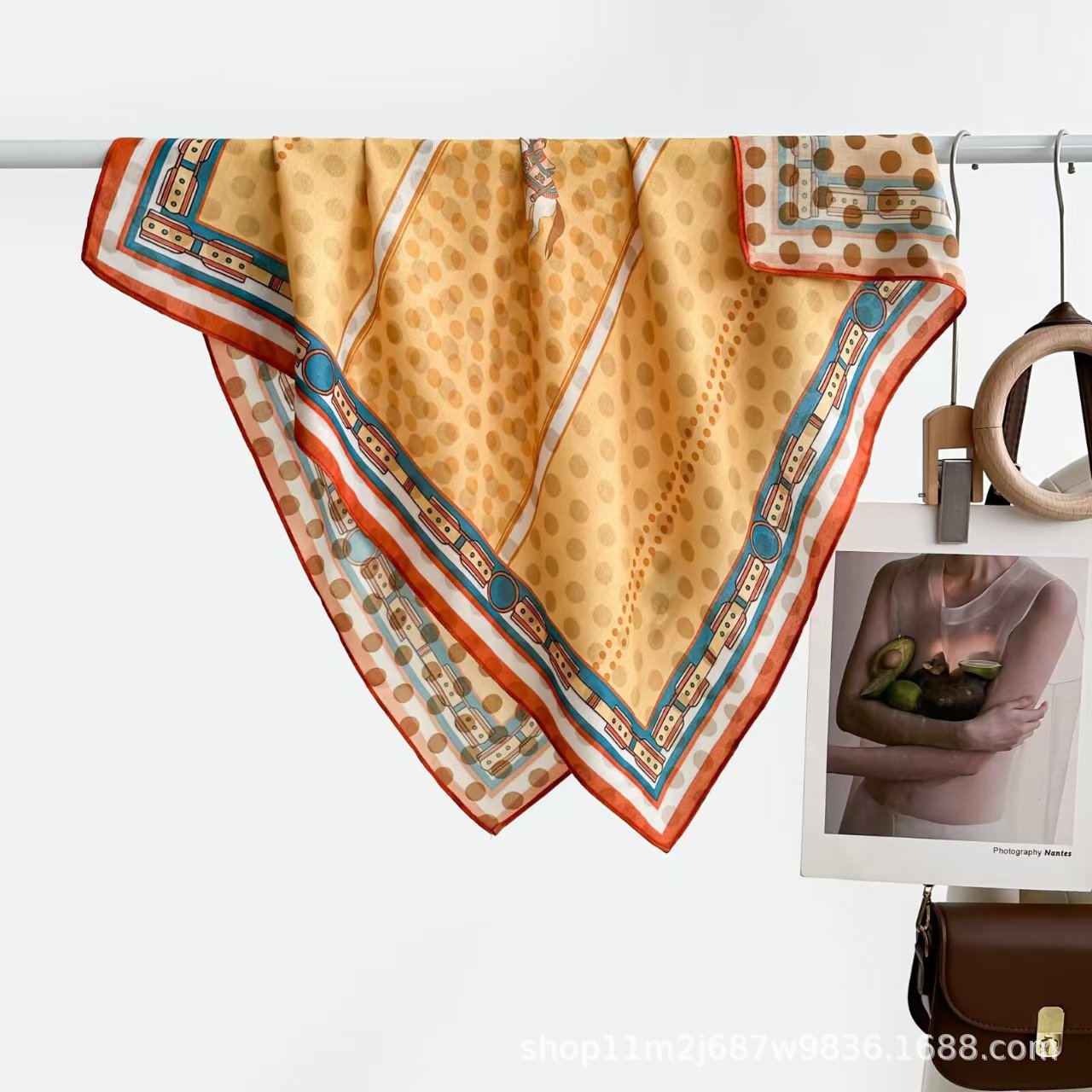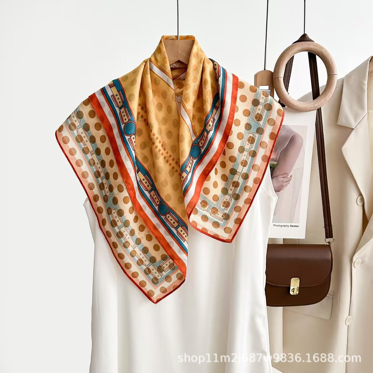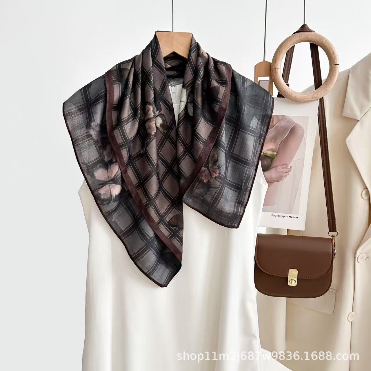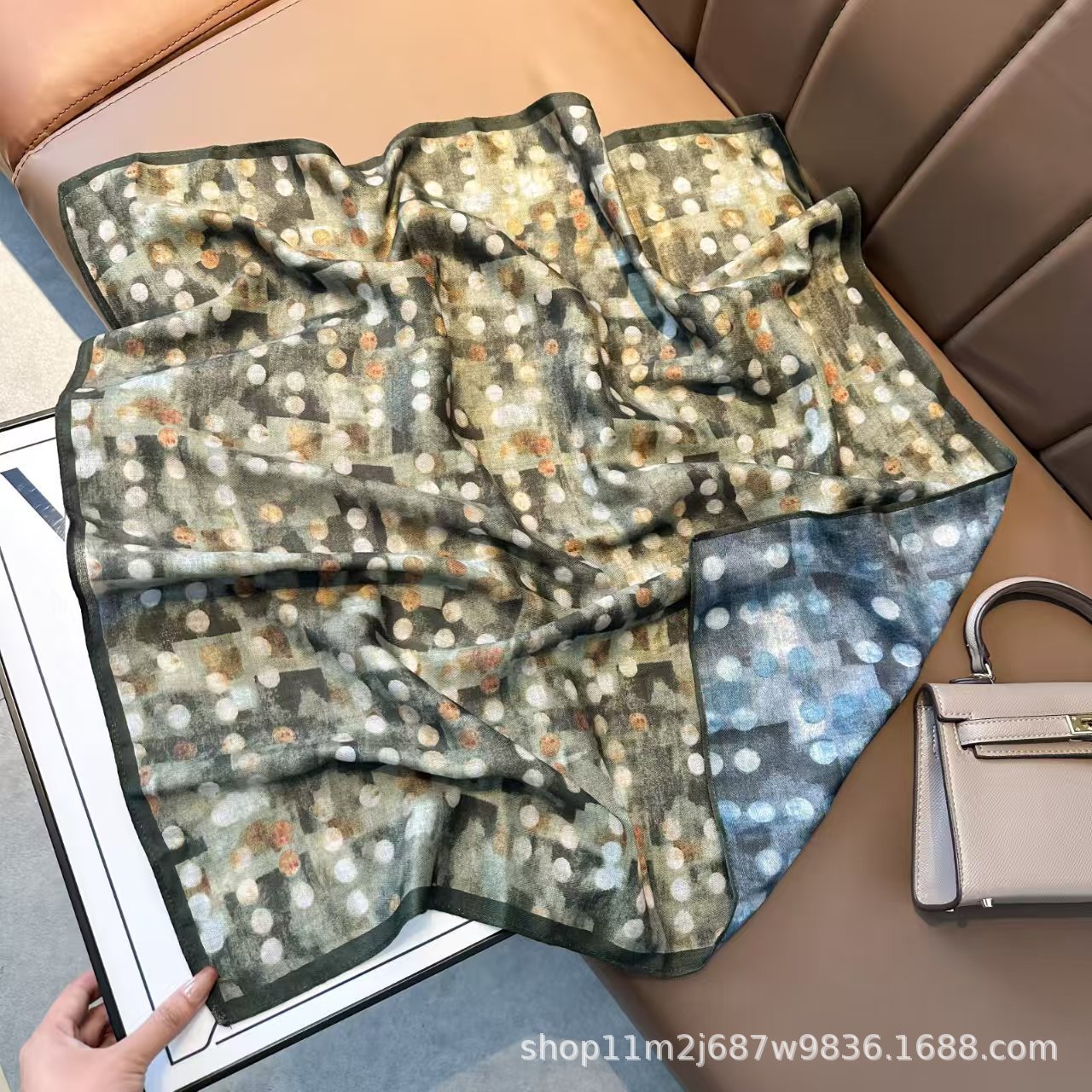 新款数码印花90方巾丝毛质感丝巾双面头巾保暖亲肤女装饰围巾