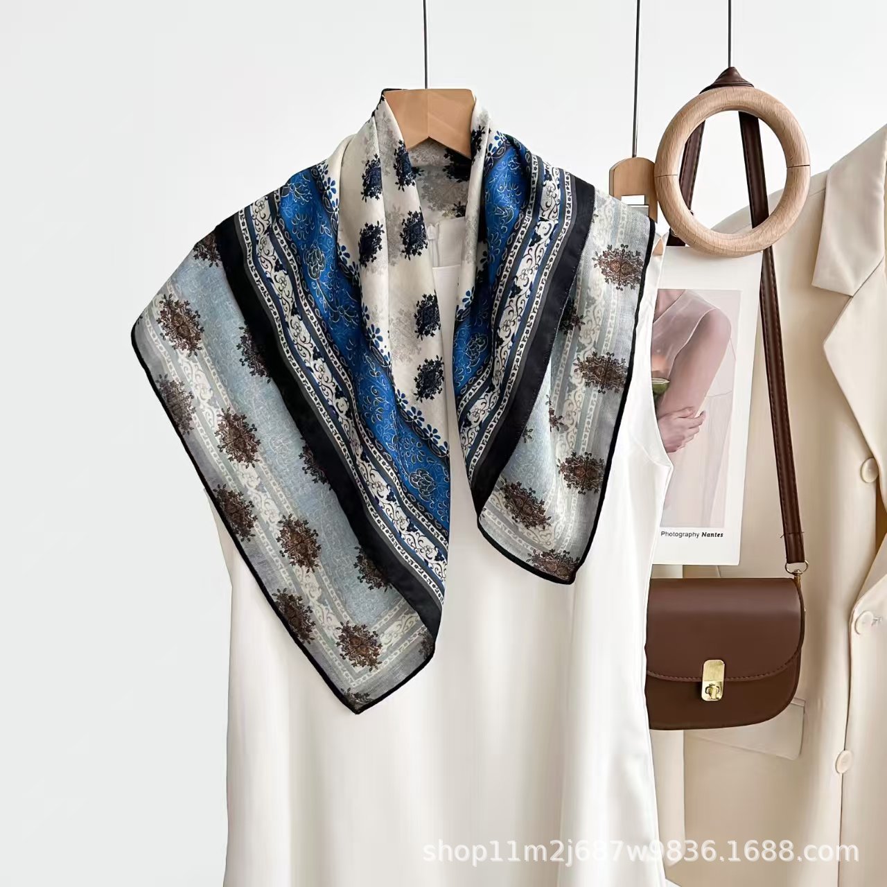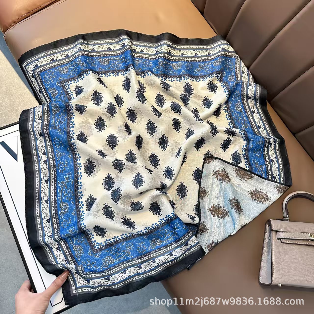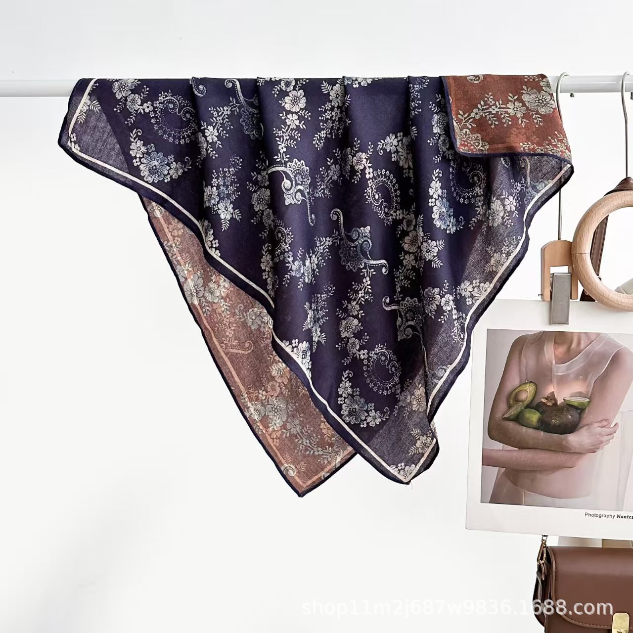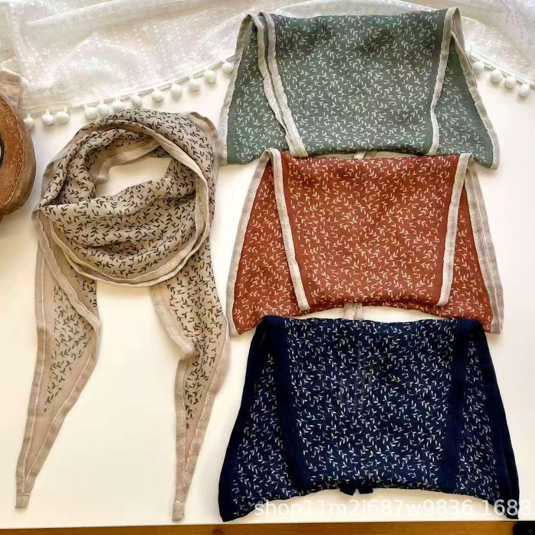 韓国に輸出〜綿と麻の薄いレトロなパターンの菱形シルクスカーフ小さな長い春と秋の多用途スカーフ女性用