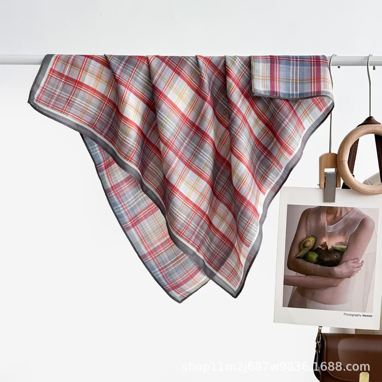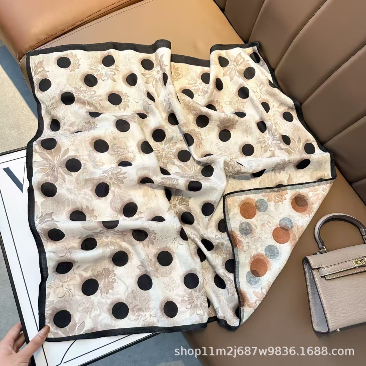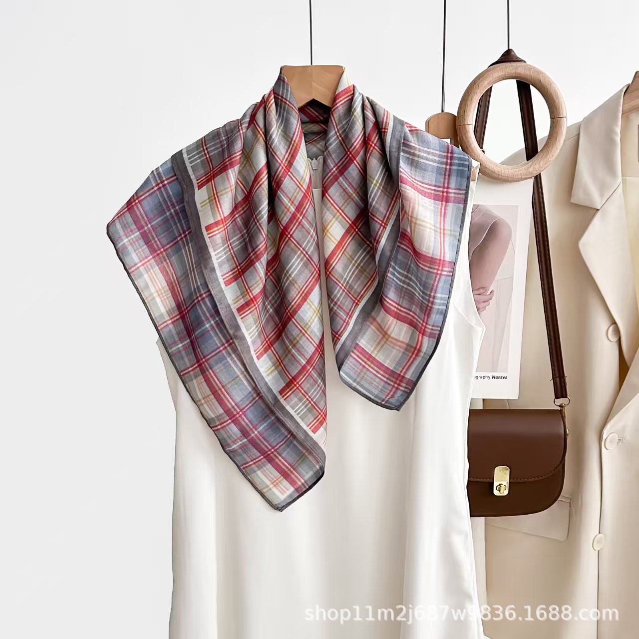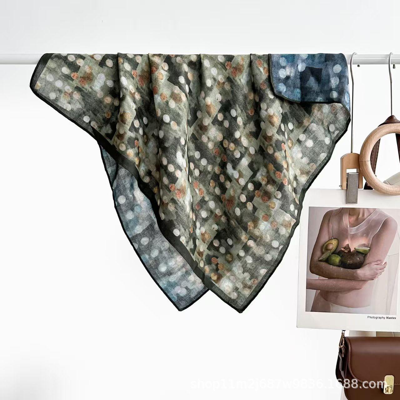 韓国に輸出〜綿と麻の薄いレトロなパターンの菱形シルクスカーフ小さな長い春と秋の多用途スカーフ女性用