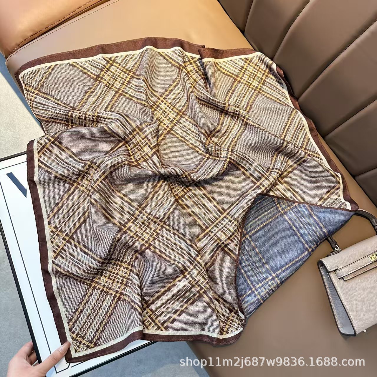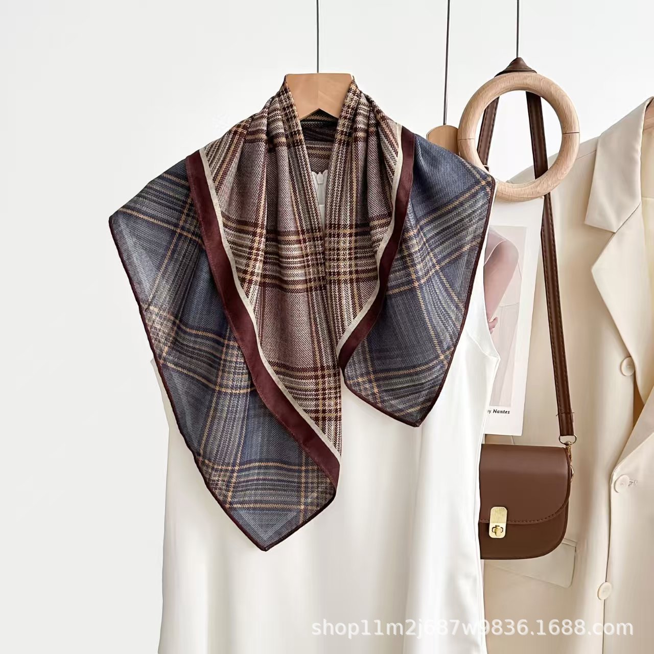 2026春秋新款90方巾双面异色丝绒手感莫文艺百搭气质大越围巾披肩