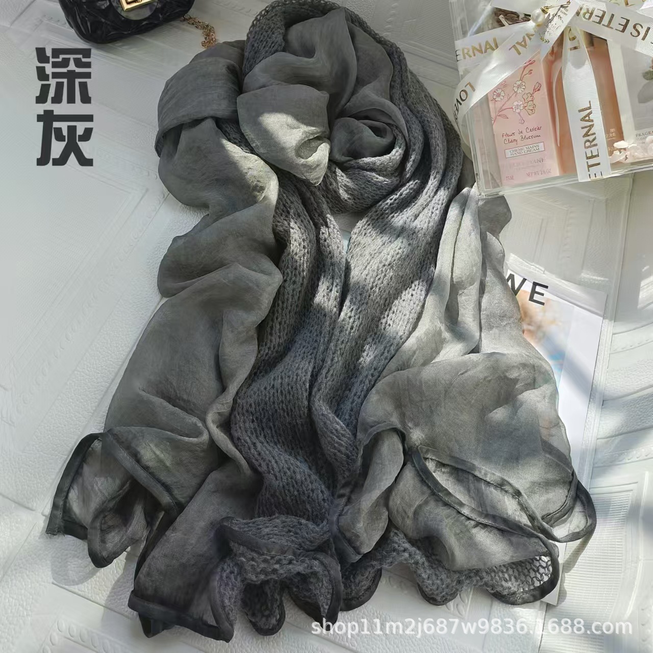 新しいマフラーの冬の女性は高級感のあるシルクウールの糸を合わせてストールの長いタイプの薫染の辺のスカーフの卸売りをつなぎます。