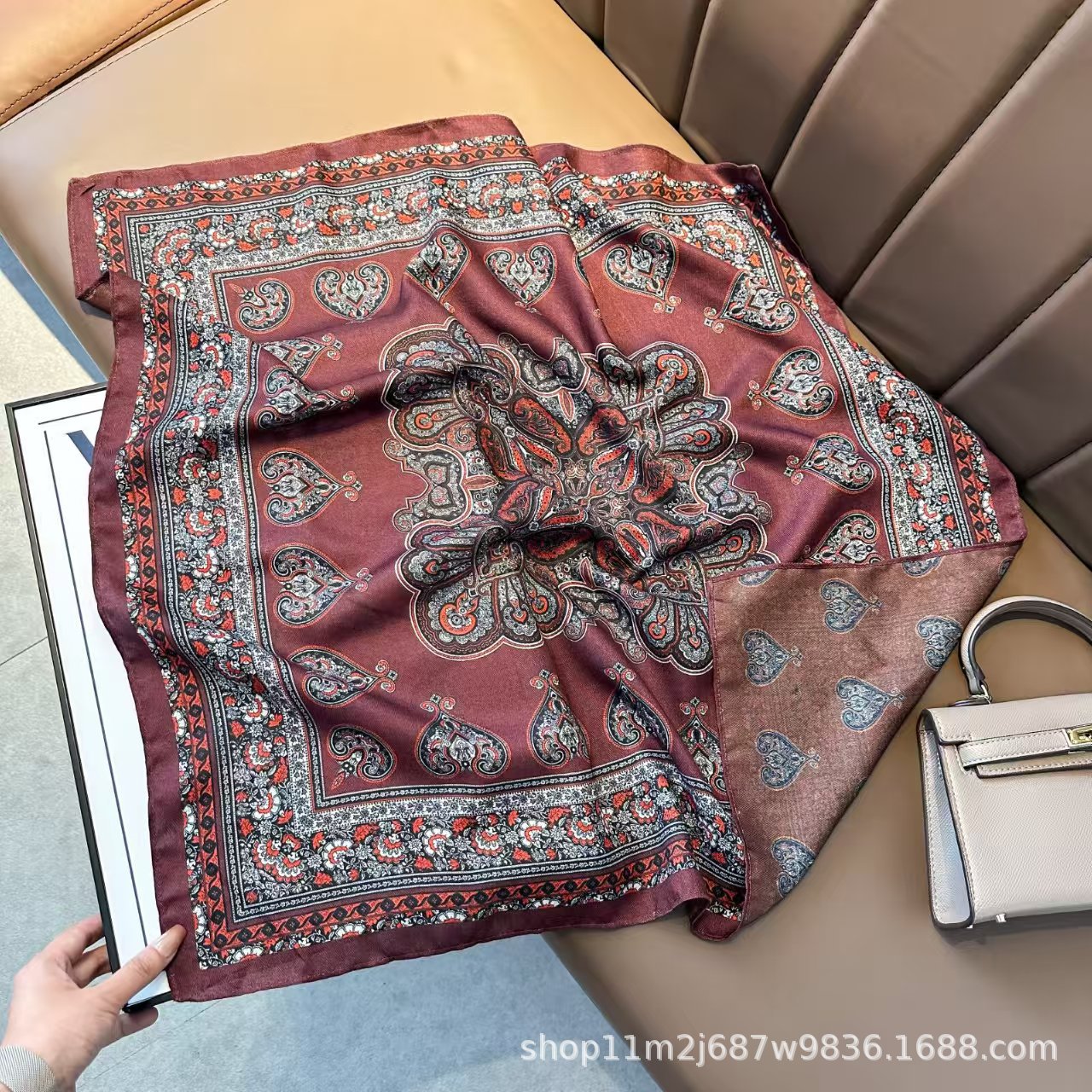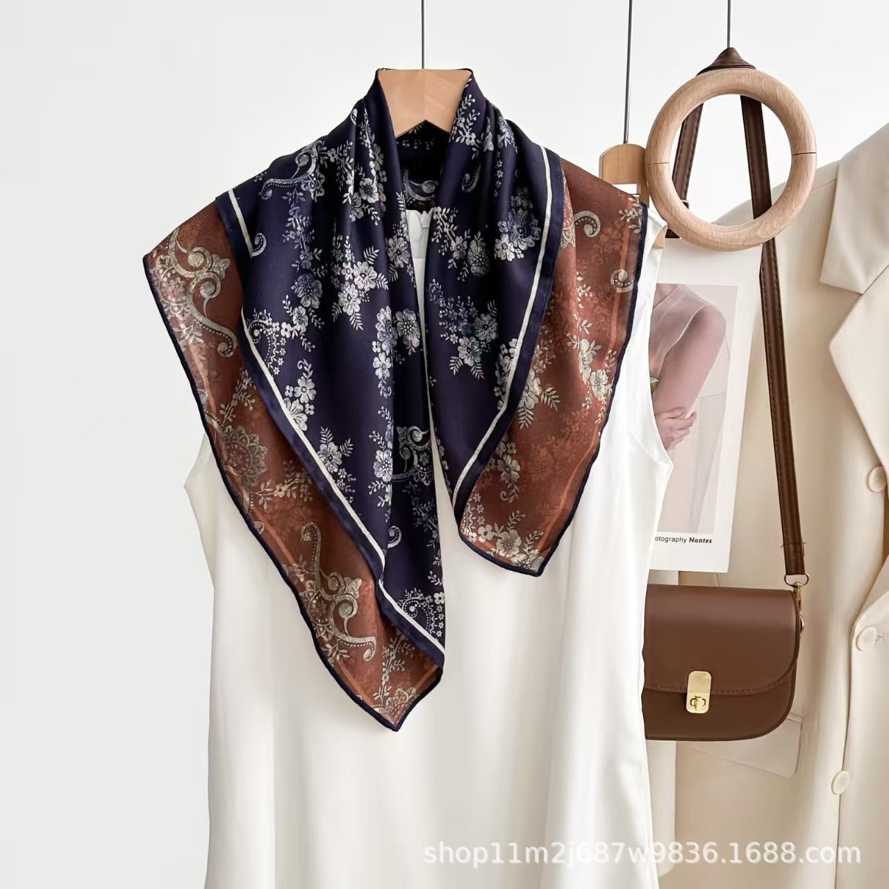 新款双色双面丝毛印花丝巾春秋领巾90方巾缎面百搭围巾女跨境电商