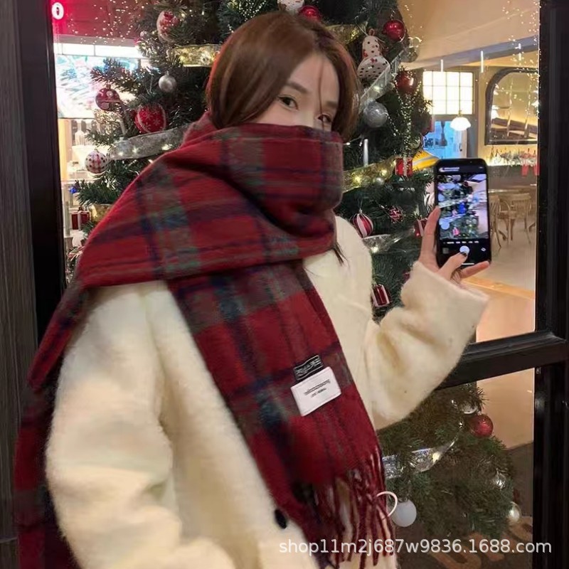 新しい韓国のマフラーの女性の高級感の柔らかいマフラーの格子のマフラーの美ラードの冬の保温の学生は首のカップルを囲みます。