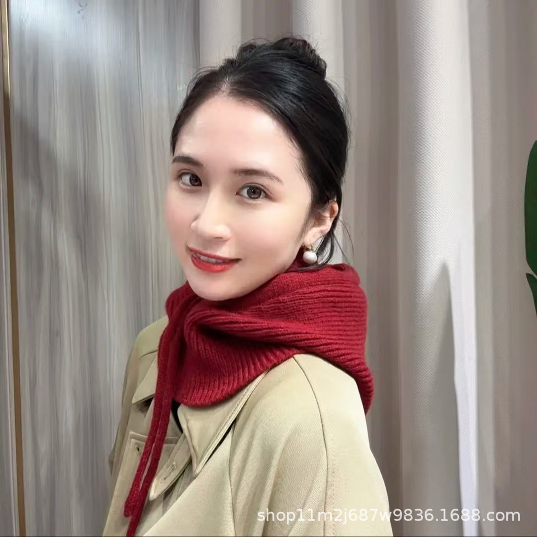 秋冬のラフ帽アンゴラの赤い帽子は首を囲む一体のマフラーを囲んで保温します。