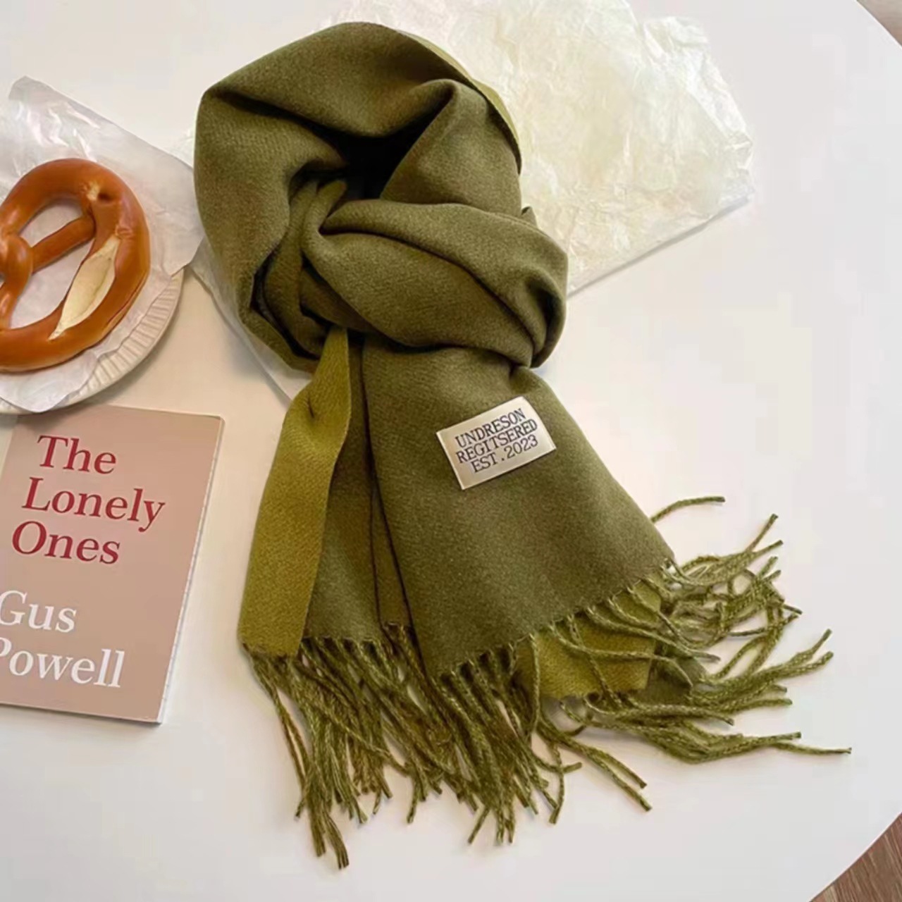 マフラー2023冬の韓国版の新型の純色はカシミヤのマフラーの両面のフリンジマフラーの女性をまねて学生の両用を厚くします。