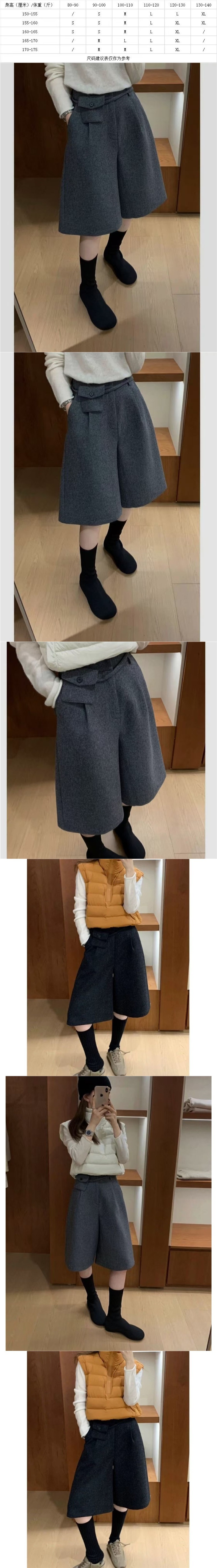 韩国东大门高腰毛呢五分裤宽松中裤休闲裤配小腰包秋冬季新款