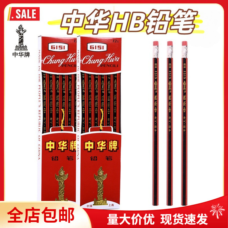 包邮正品中华牌铅笔6151原木HB铅笔小学生学习儿童铅笔文具12支装