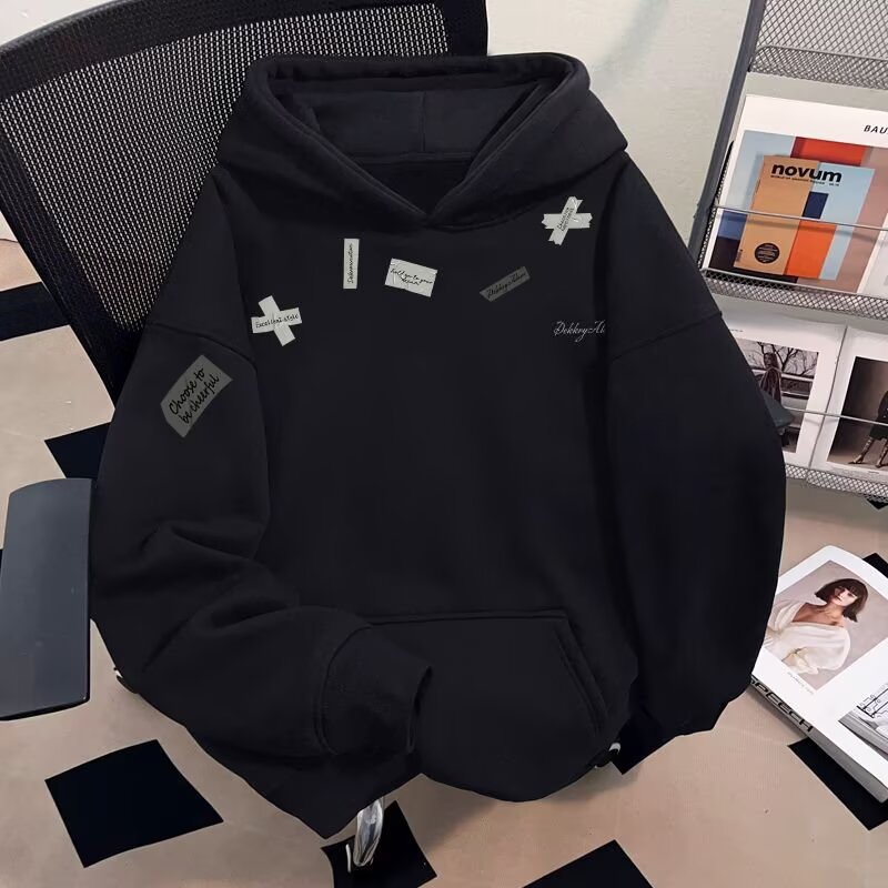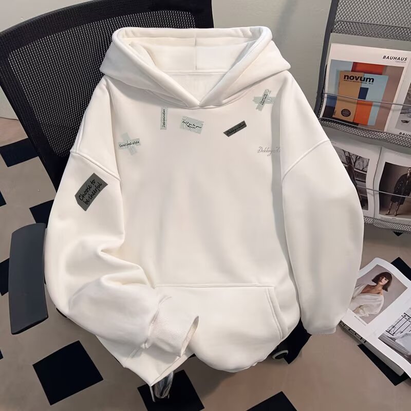 原宿慵懒ins新款流行高级感薄款加绒卫衣潮流时尚简约百搭文艺男