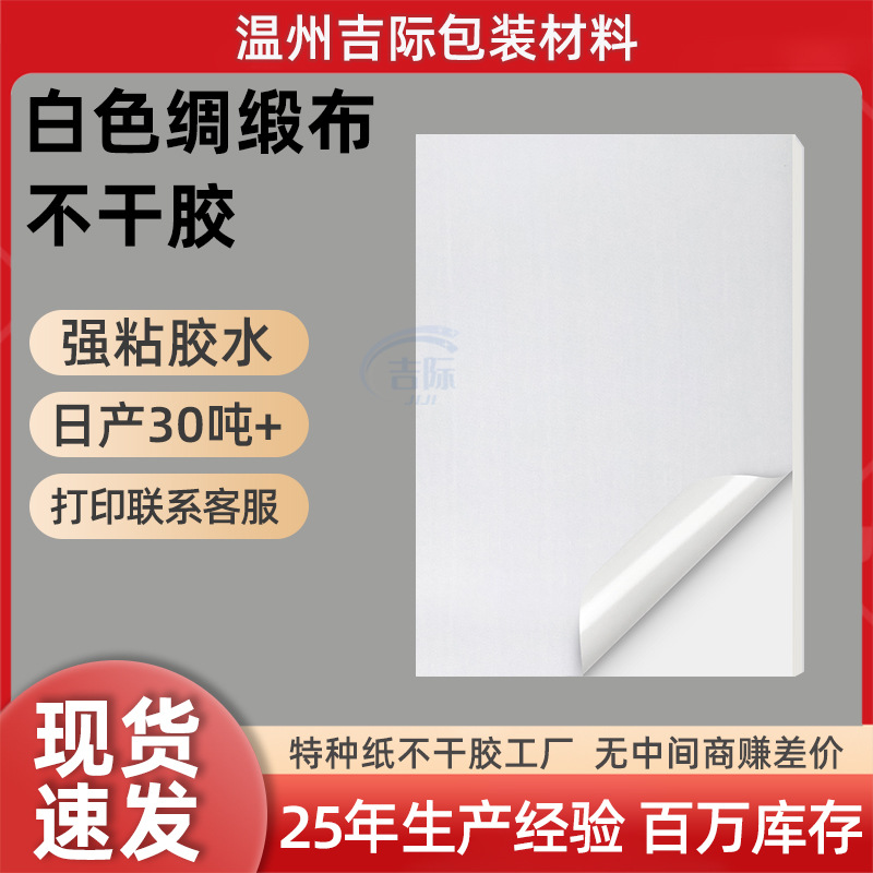 a3a4激光涂层白色绸缎布标签贴纸定制丝绸缎布打印纸封口贴不干胶