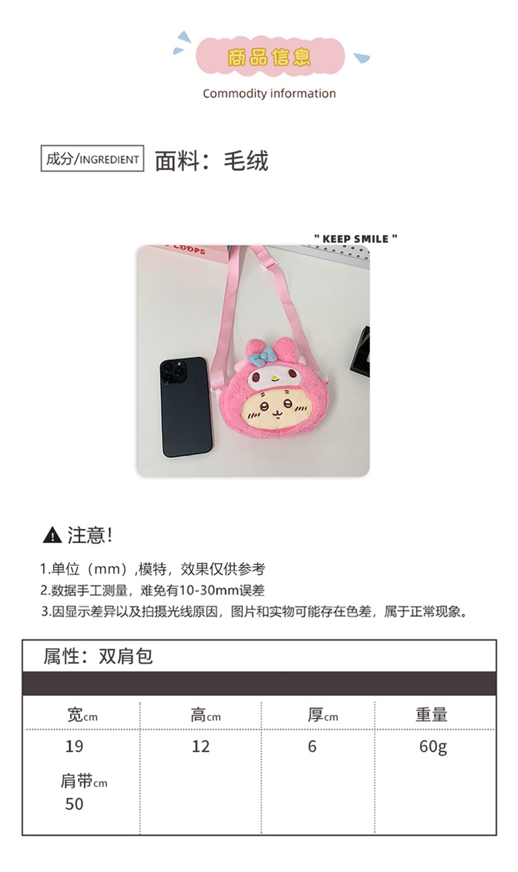 日系卡通百搭毛绒零钱包新款可爱单肩背包乌萨奇少女礼物斜挎包