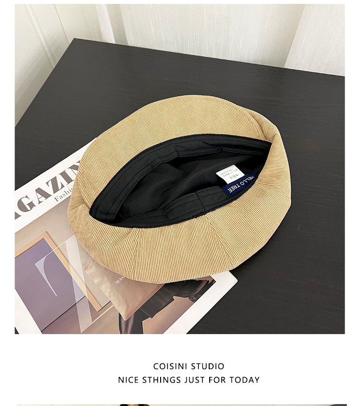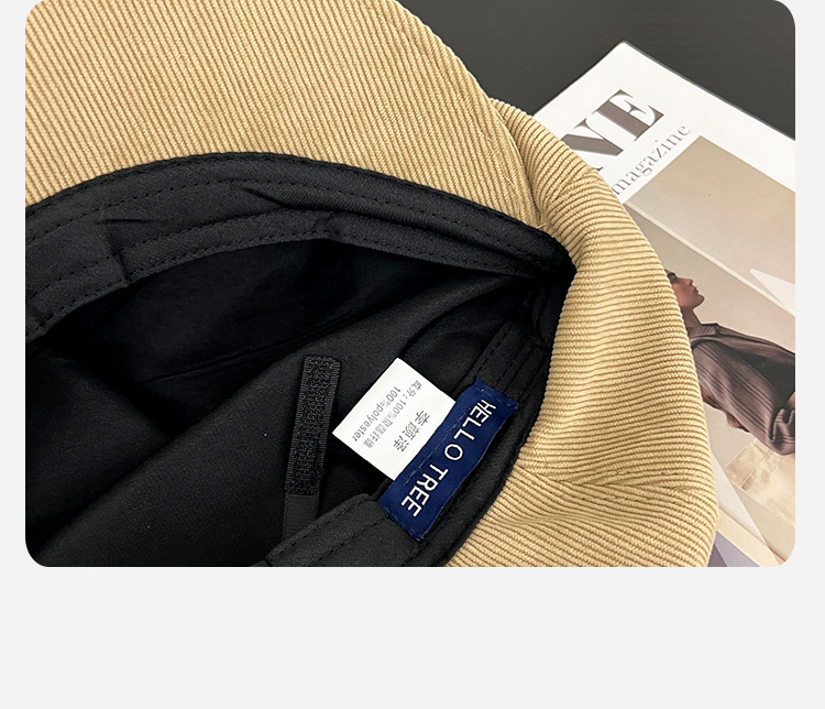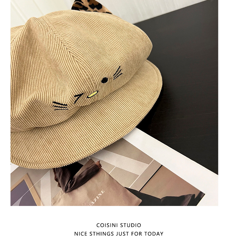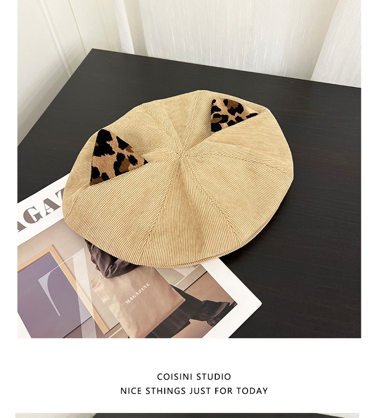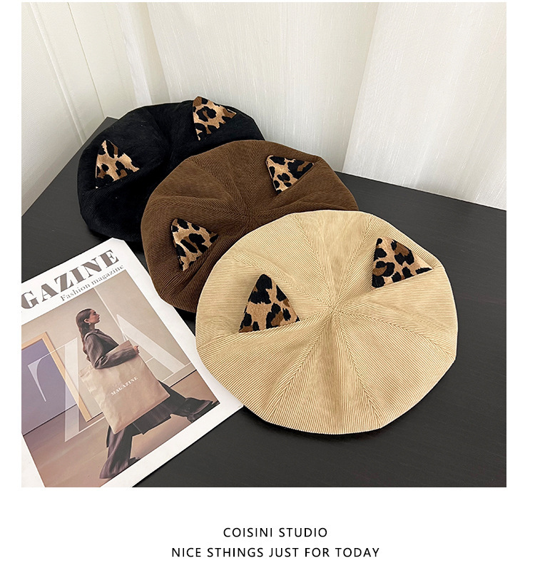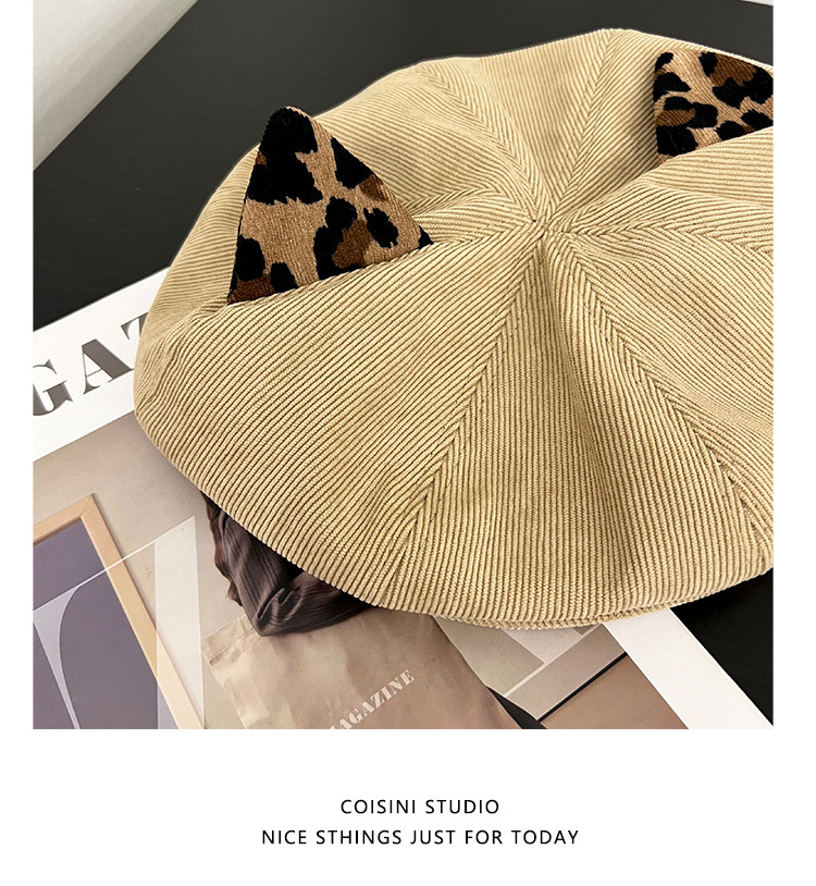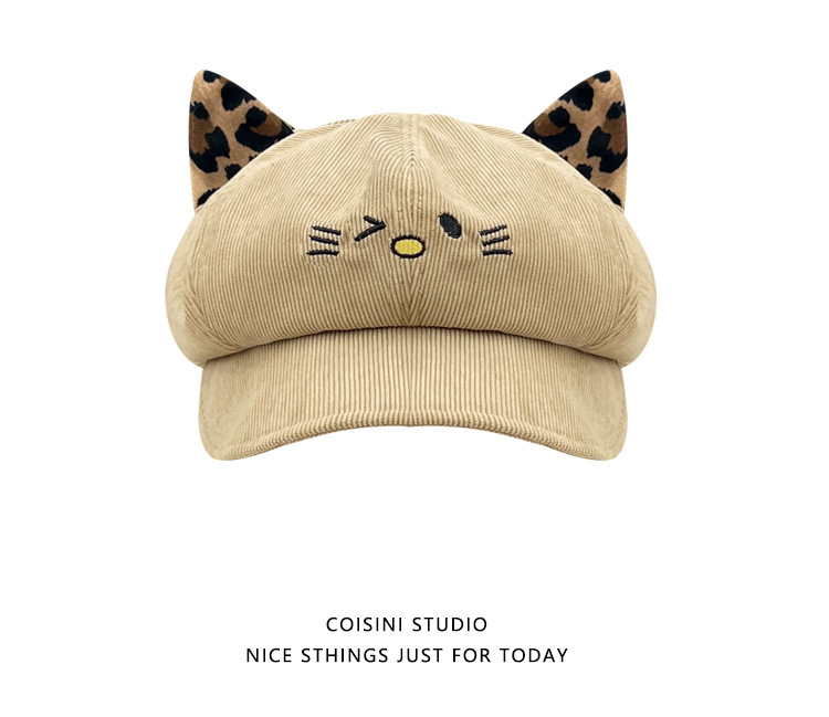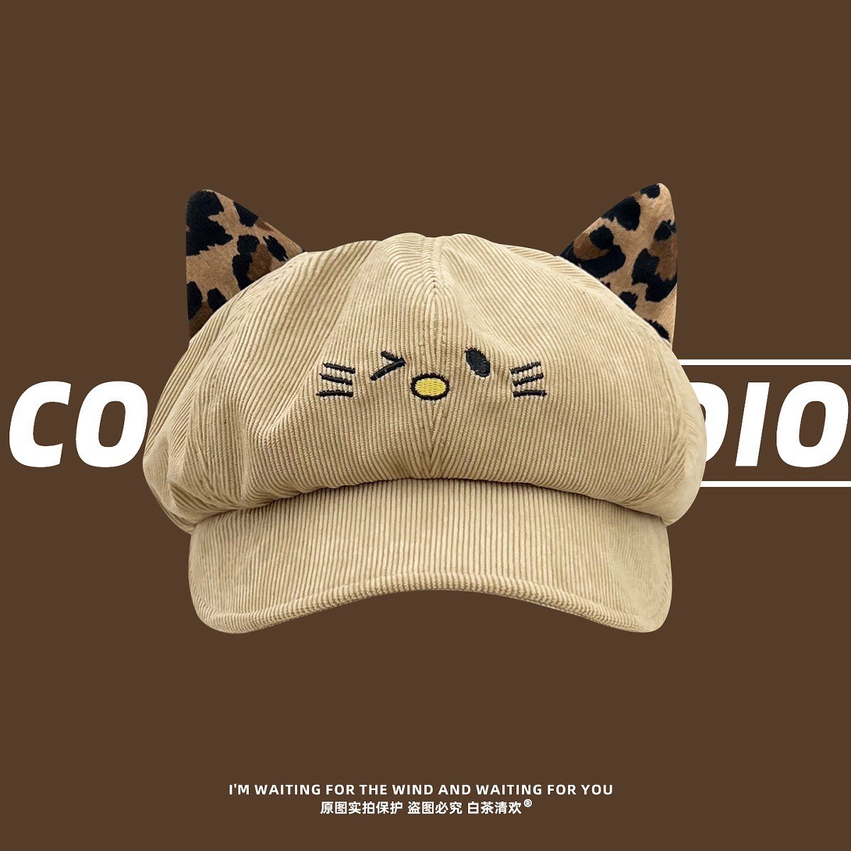 2025新款可爱猫咪耳朵灯芯绒八角帽子女秋冬保暖百搭贝雷帽显脸小