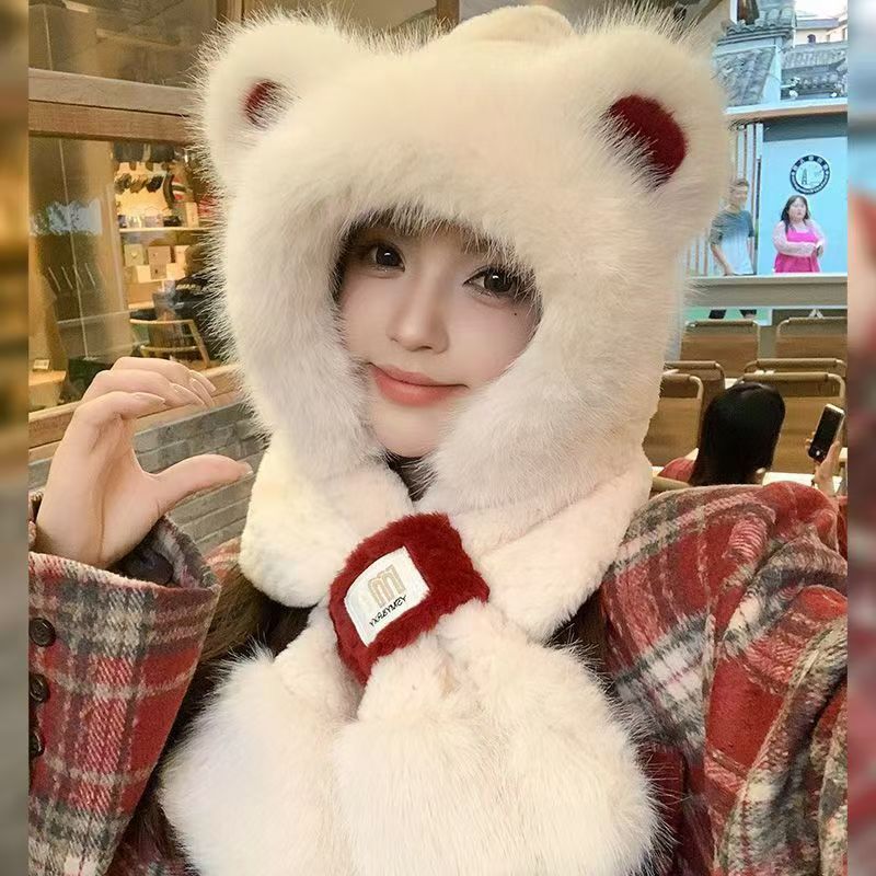 冬のマスクは首を囲む一体帽子とベルベットの保温耳保護スキー帽屋外自転車防風顔雷鋒帽