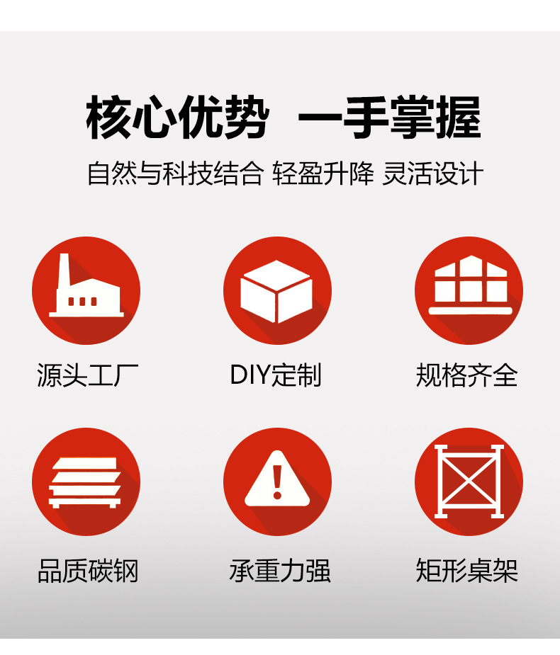 工場は直接に手を振って昇降します。テーブルの足は炭素鋼のテーブルの棚の机の支えをしっかりと固めます。