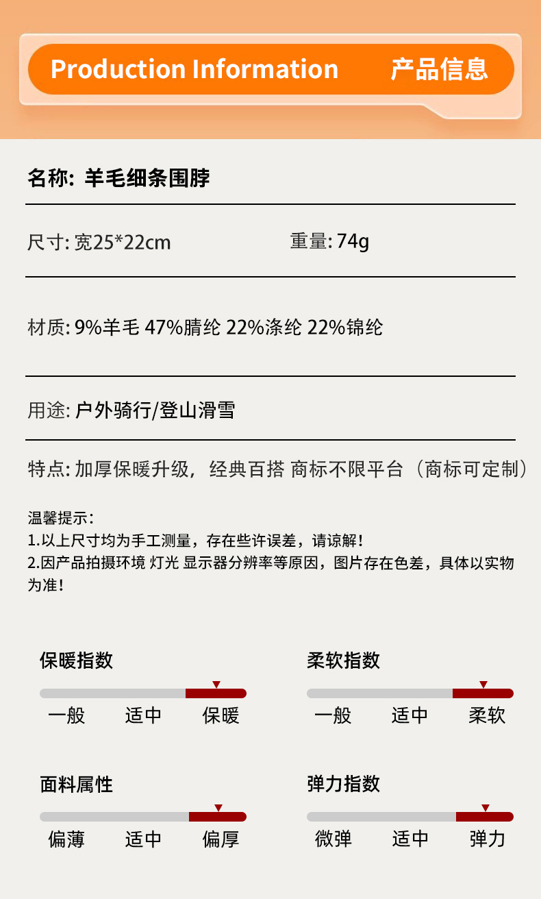 货号 羊毛细条围脖·