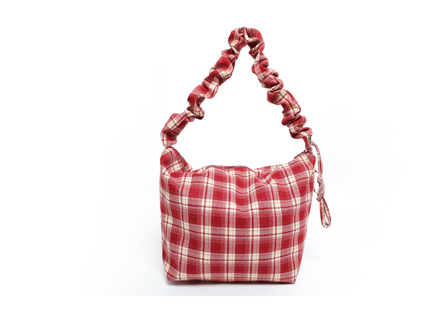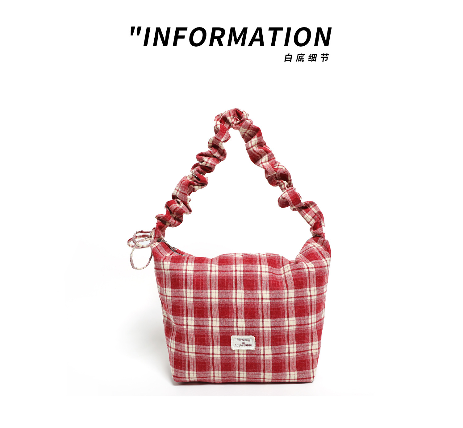 2025秋冬新款托特格子复古毛呢单肩包包松弛感通勤时尚手提水桶包