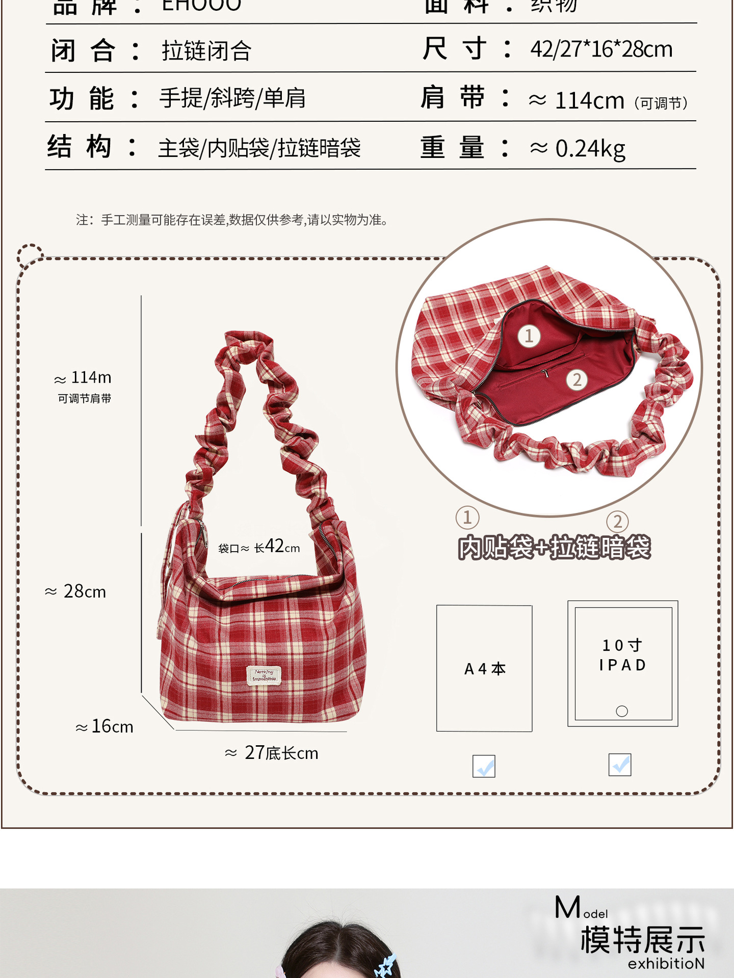 秋冬氛围感包包格子包斜挎包女包2025新款帆布包韩系慵懒风托特包