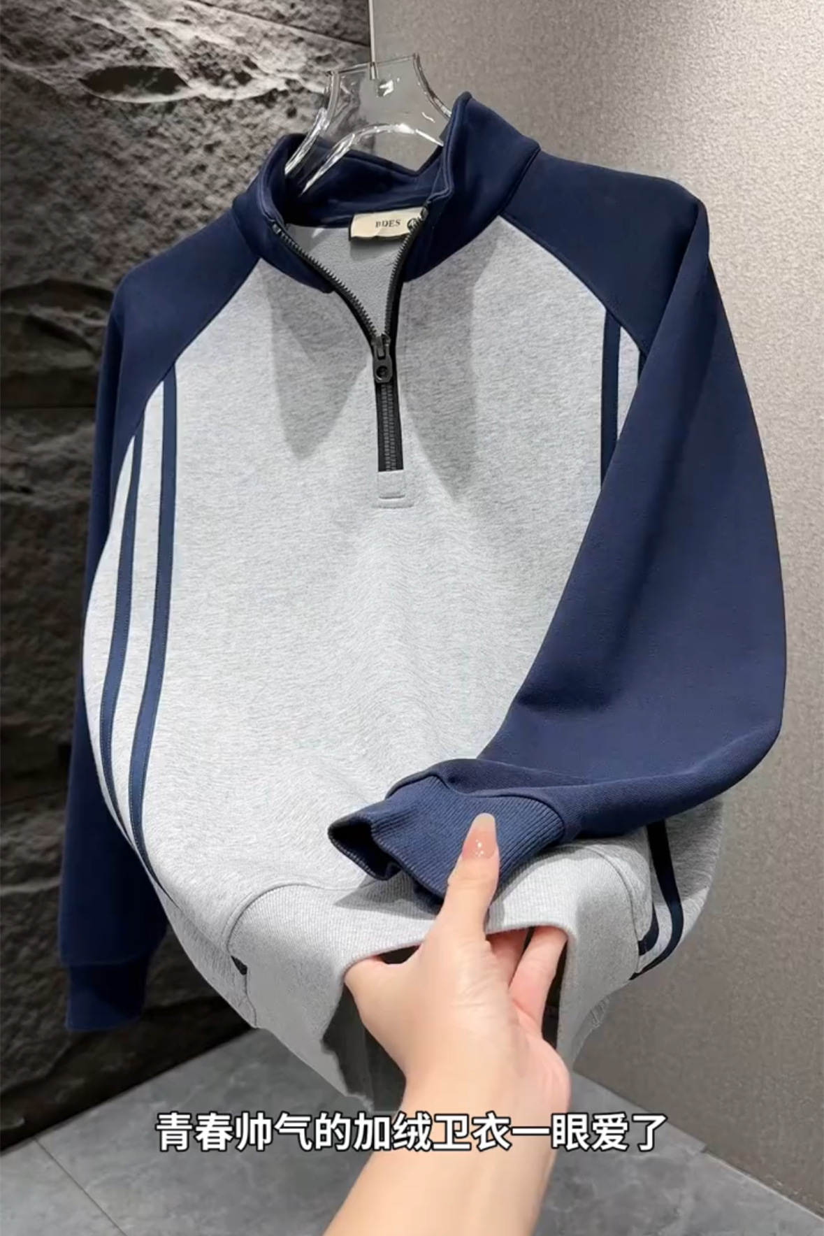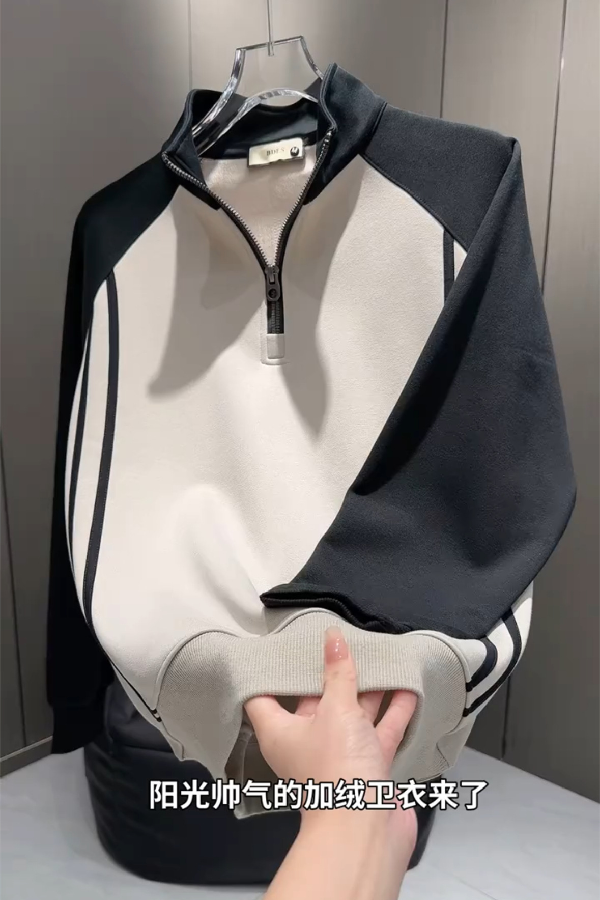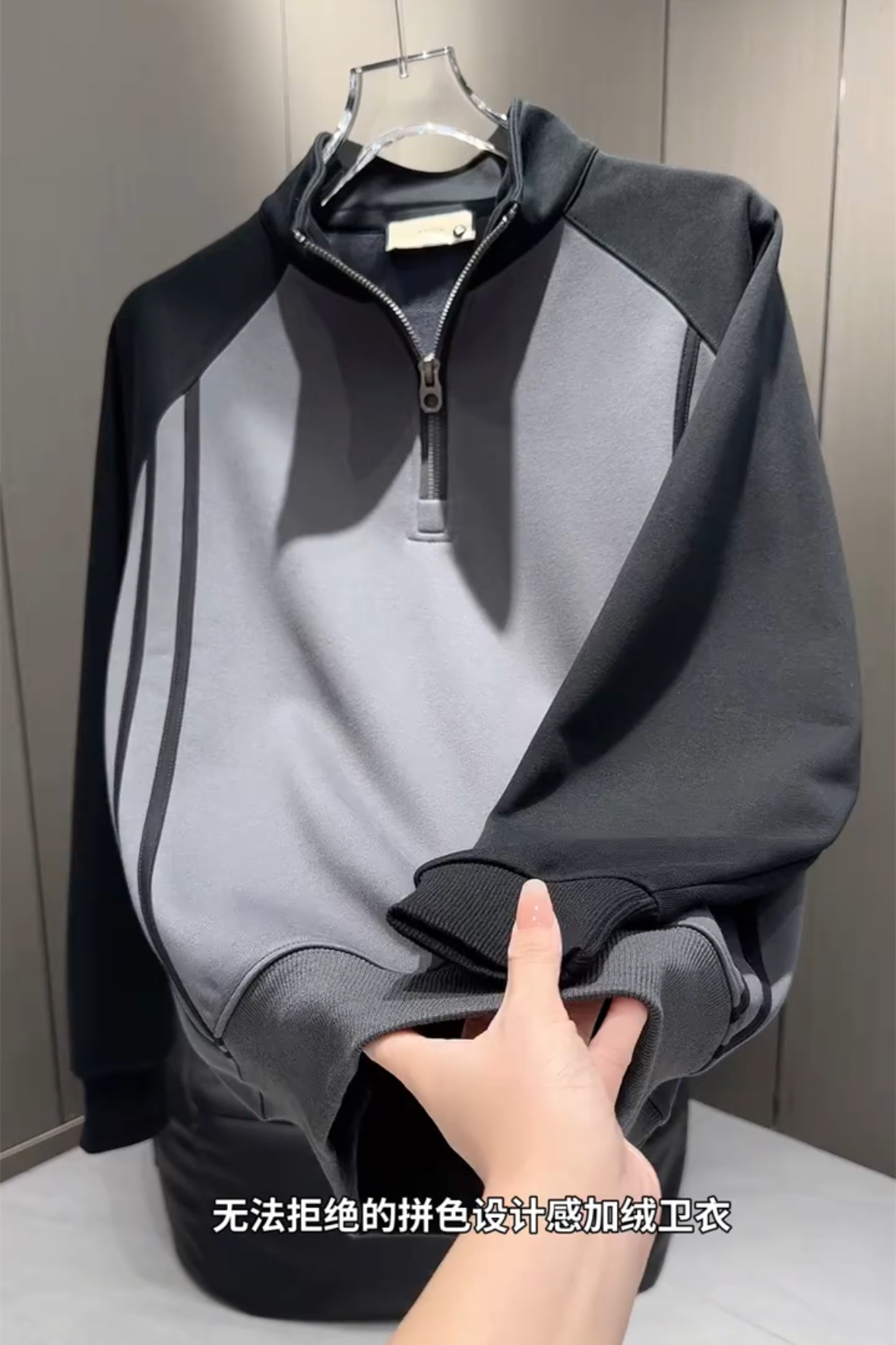 秋季爆款织带拼接立领卫衣男轻奢潮流百搭半拉链运动百搭休闲上衣