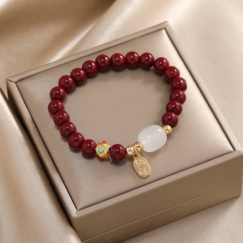 国风手链福款珠手链手串仿朱砂手串福牌本命年古风便宜手饰民族风