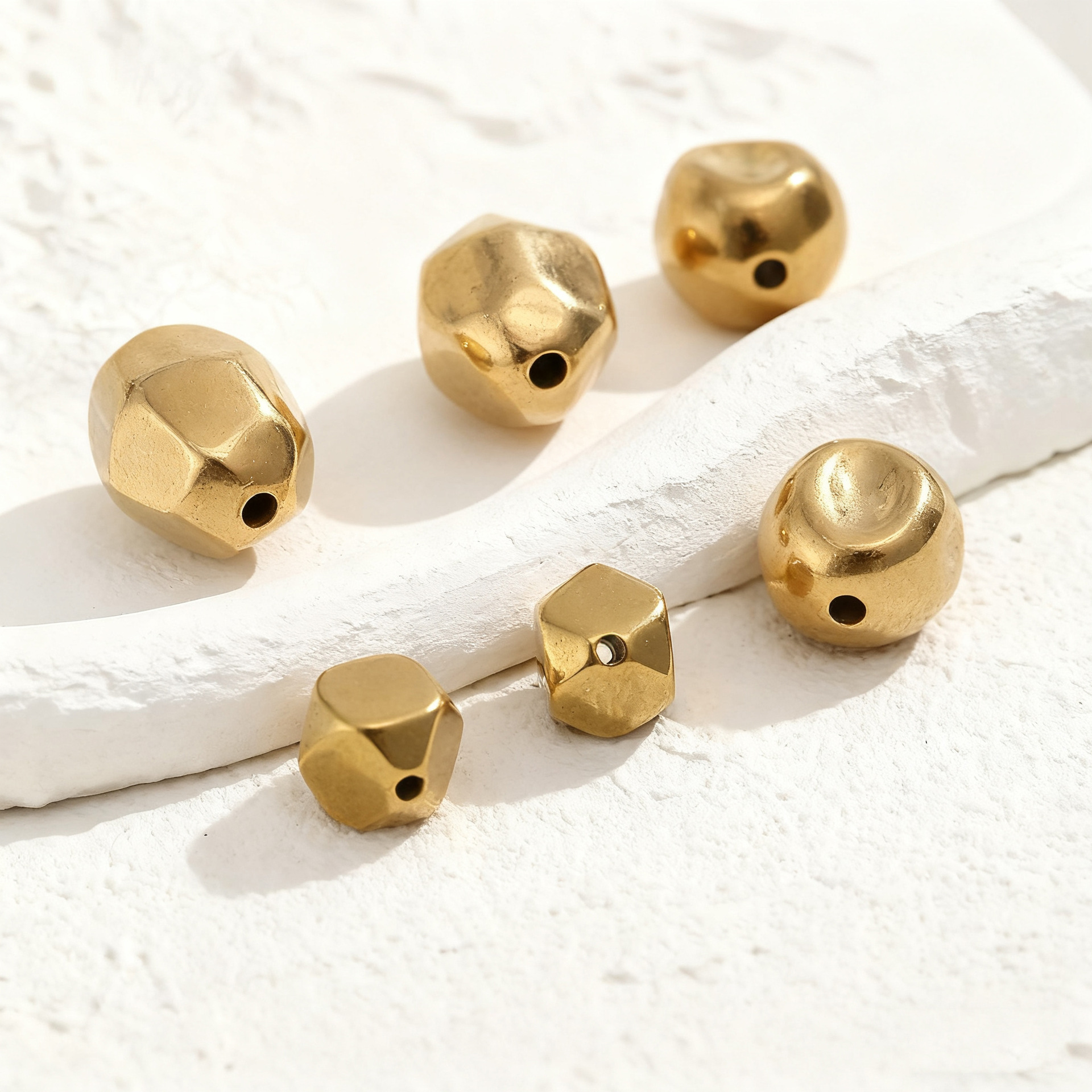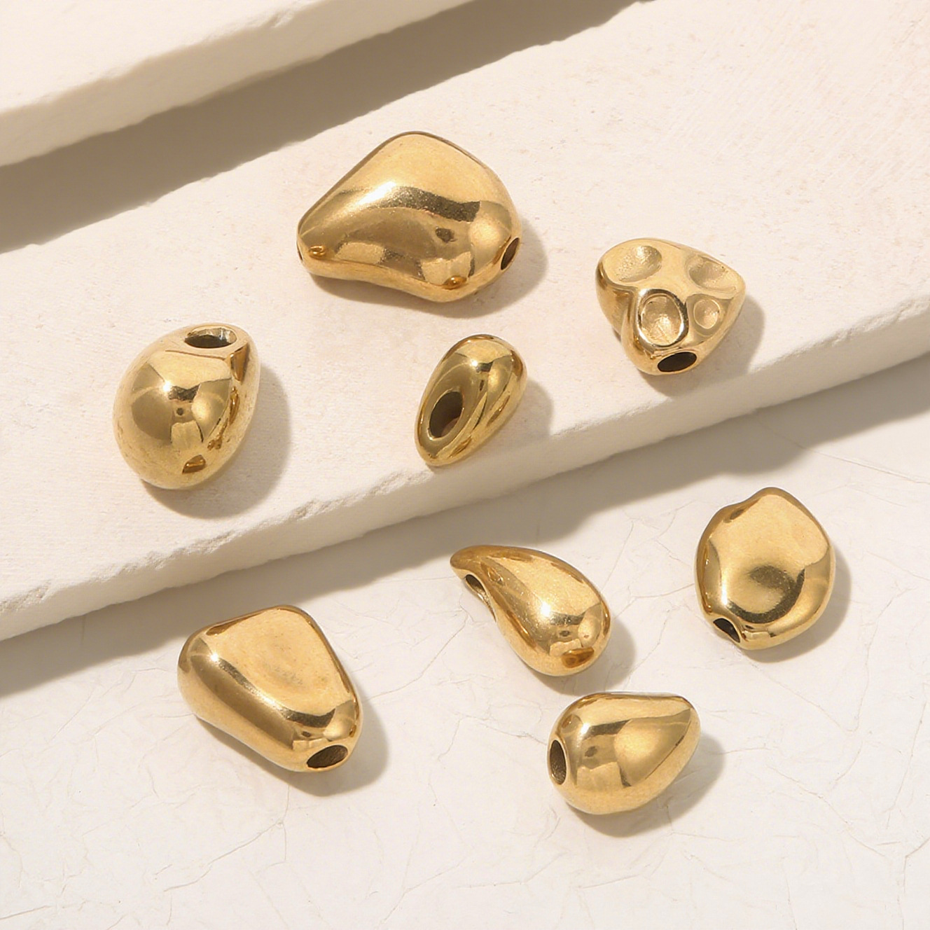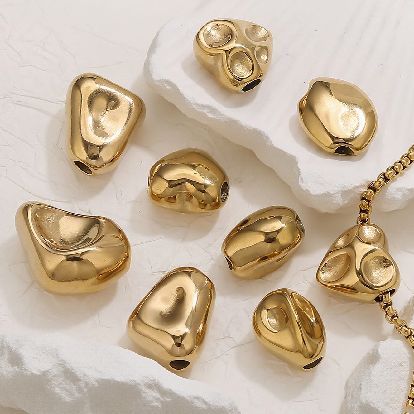 不锈钢镀18K金 不规则异形穿孔珠子DIY 手链项链耳环饰品配件批发