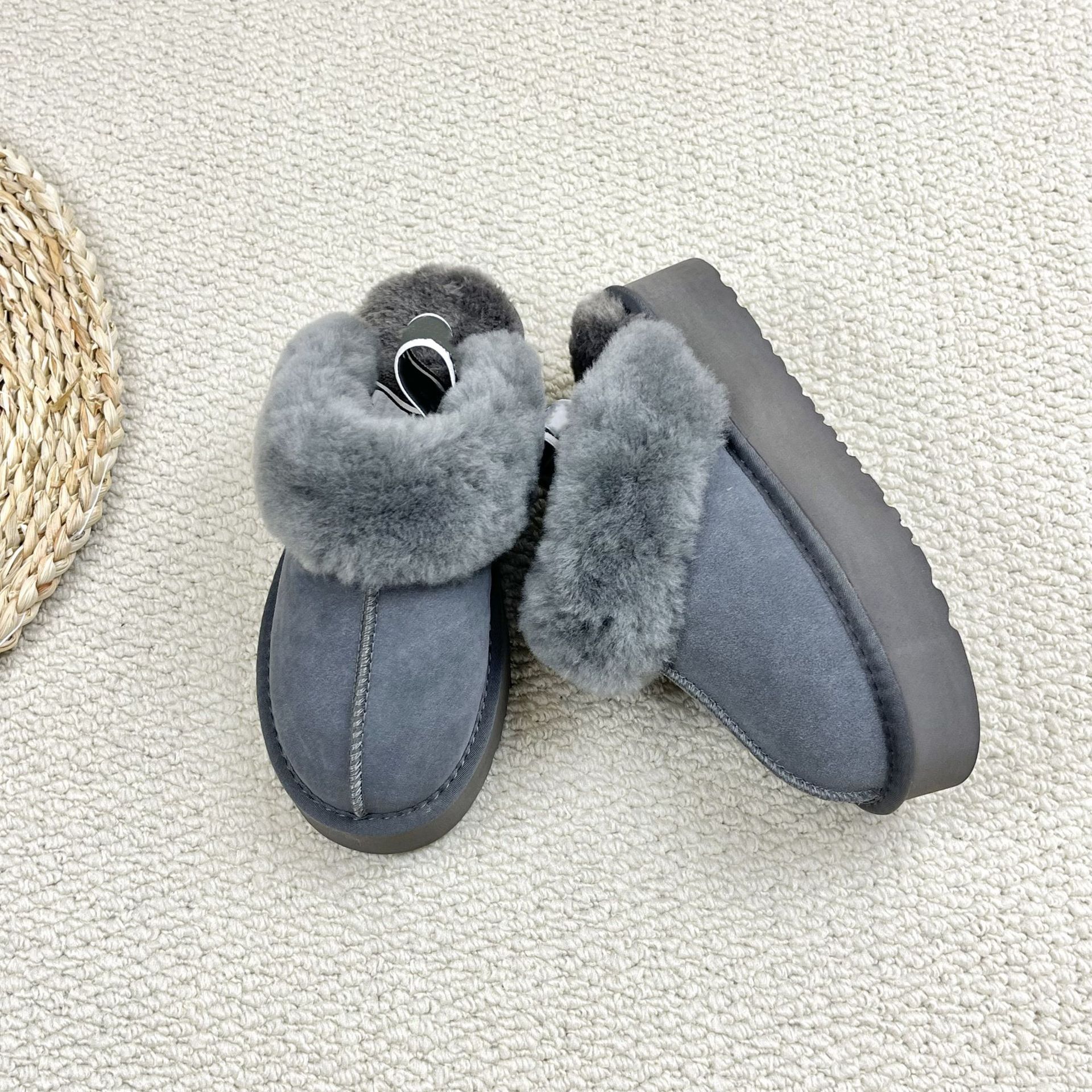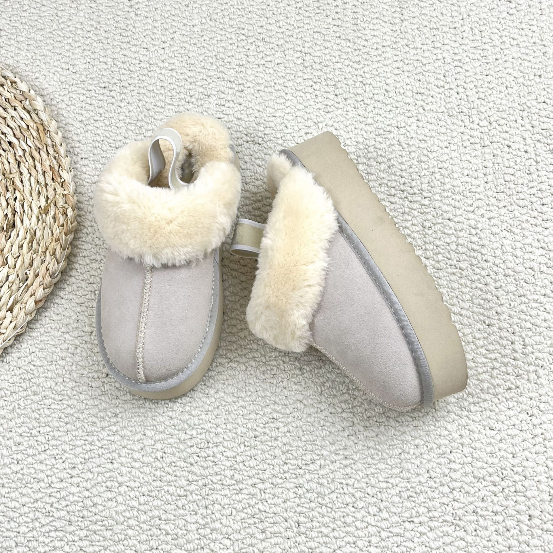 跨境外贸后松紧带毛毛拖鞋女外穿2025秋冬新款厚底防滑包头棉拖鞋