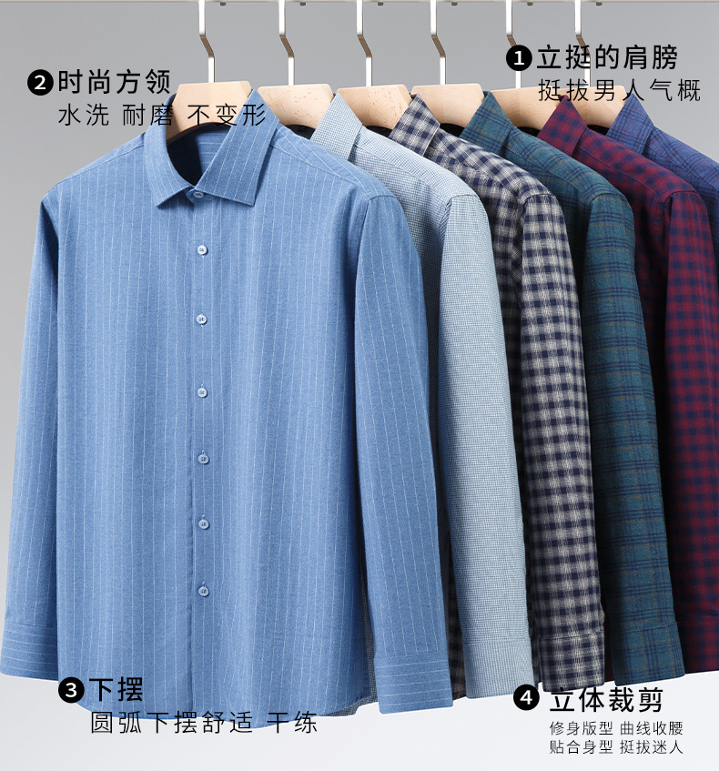 2025秋季双面磨毛长袖男士格子衬衫水洗休闲商务高级感衬衣男新款