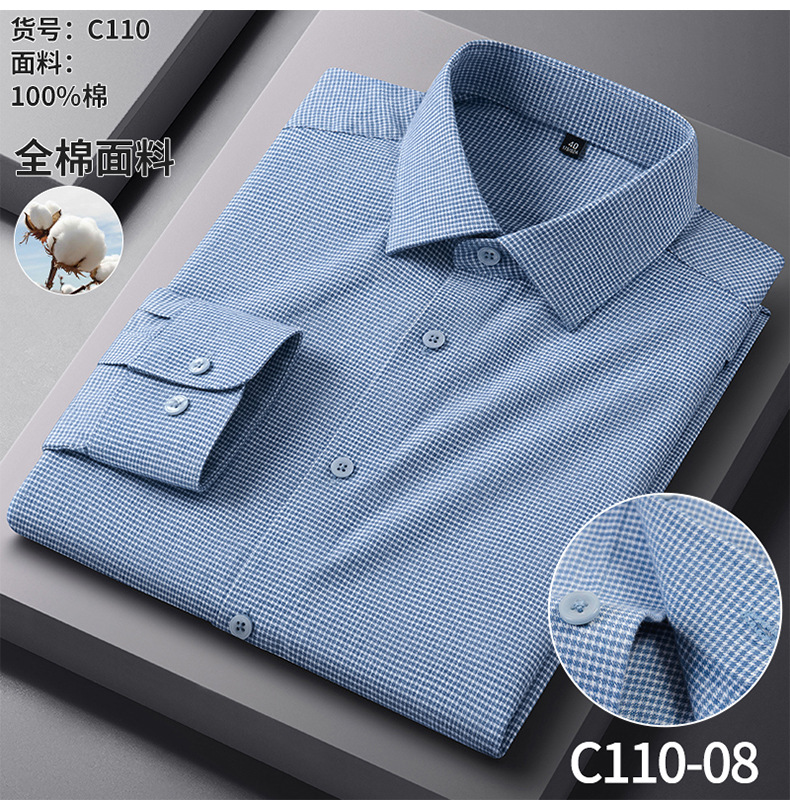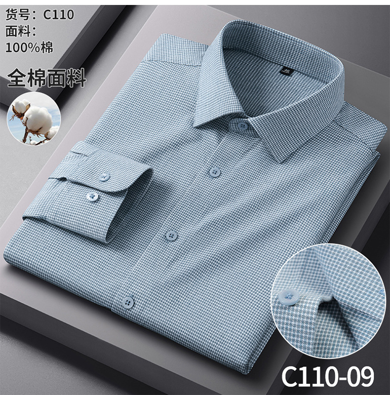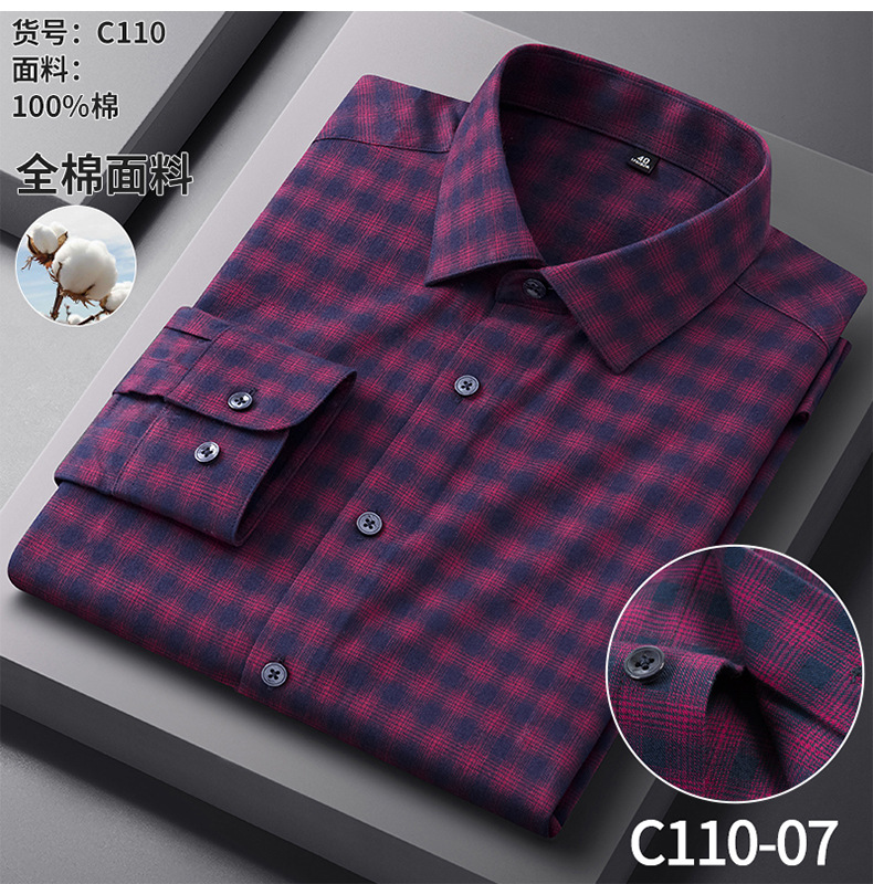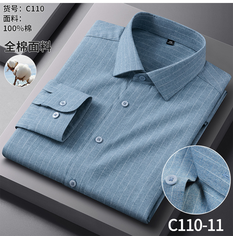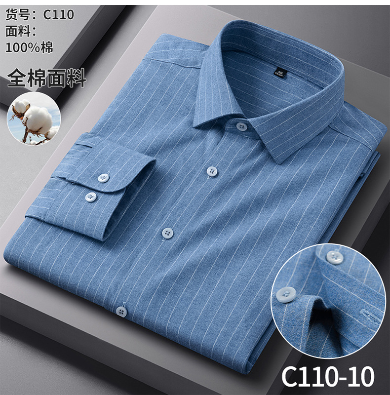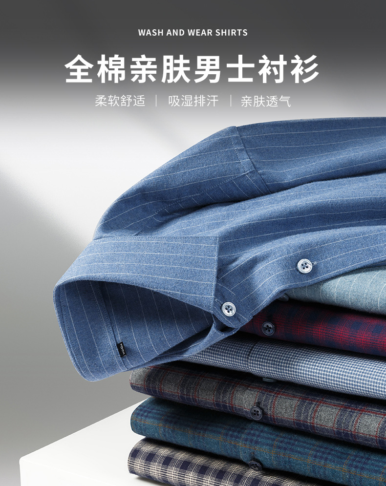 纯棉磨毛男士衬衫长袖春秋棉衬衣男2025新款中年抗皱商务休闲男装