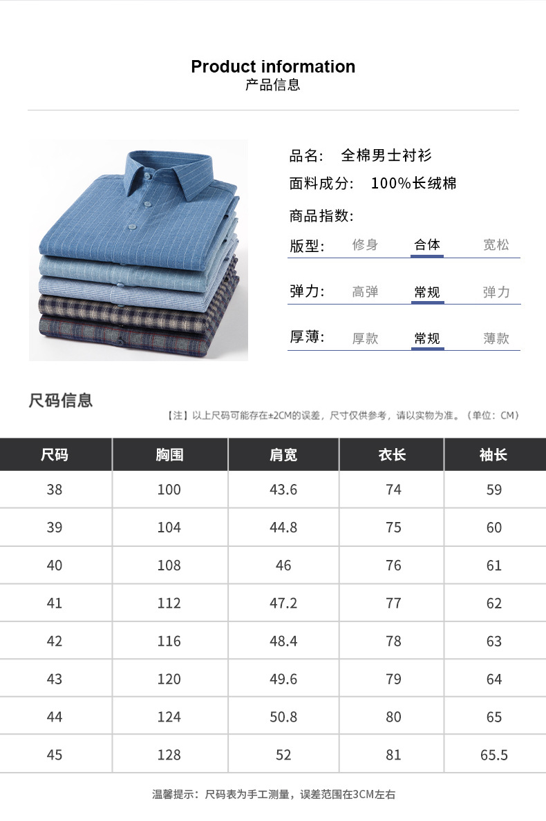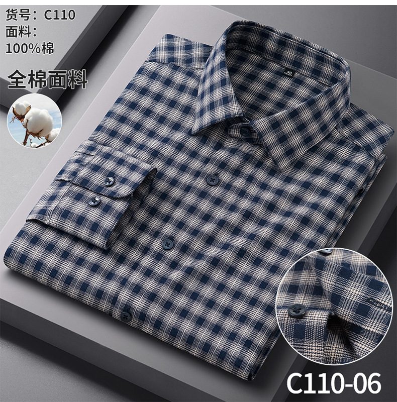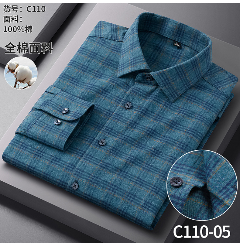 【新款】100%纯棉磨毛格子长袖男衬衫秋季中青年休闲免烫百搭衬衣