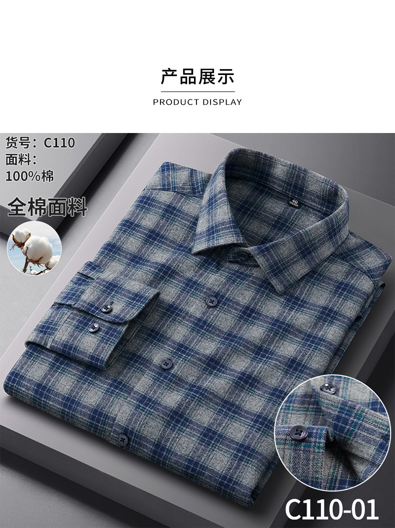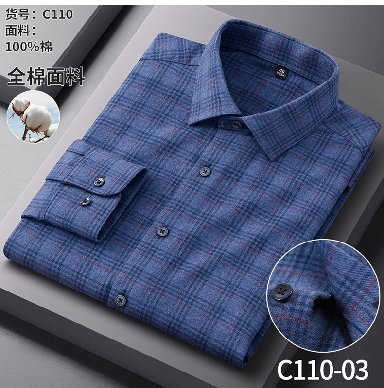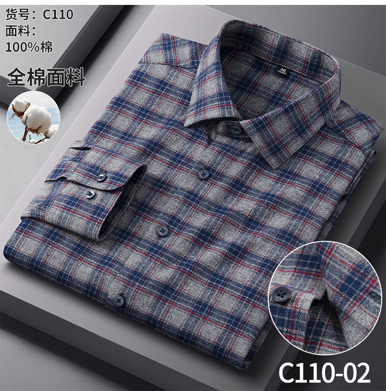 春と秋の純綿磨毛長袖格子シャツ男性二重水洗カジュアルビジネス高級感シャツ男