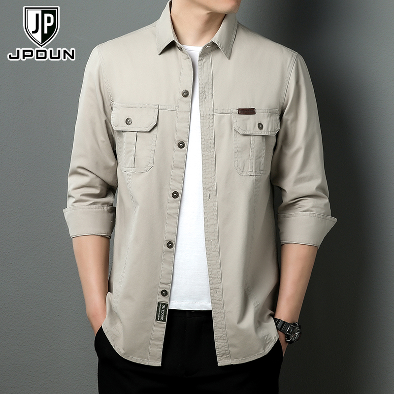 春秋男士长袖衬衫纯棉百搭休闲帅气大装衬衣薄外套翻领衣