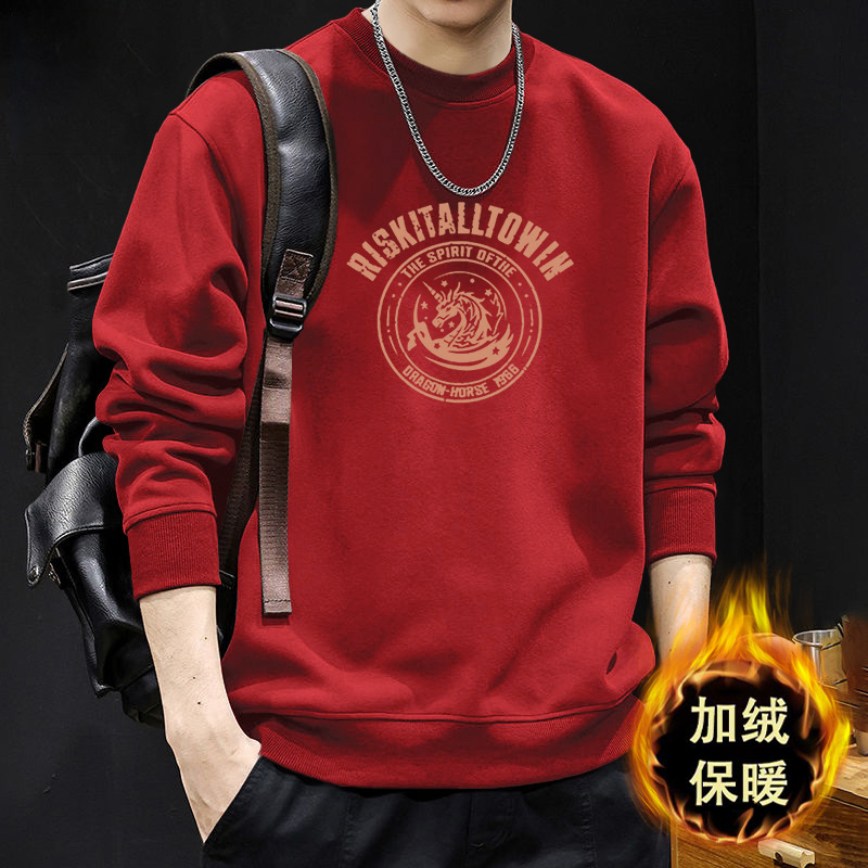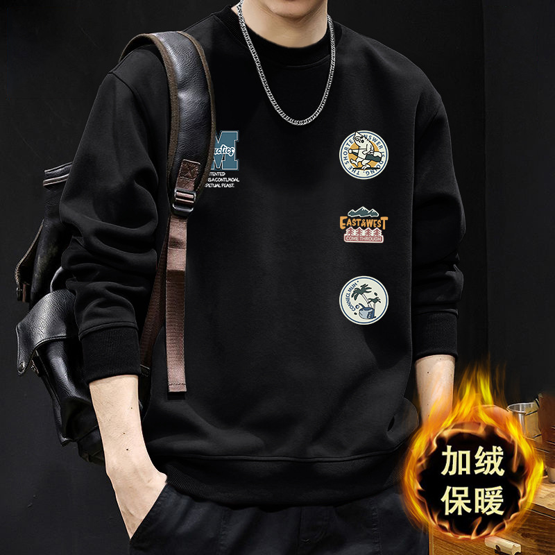 卫衣男圆领冬季新款潮流宽松百搭男士加绒加厚外套港风上衣服
