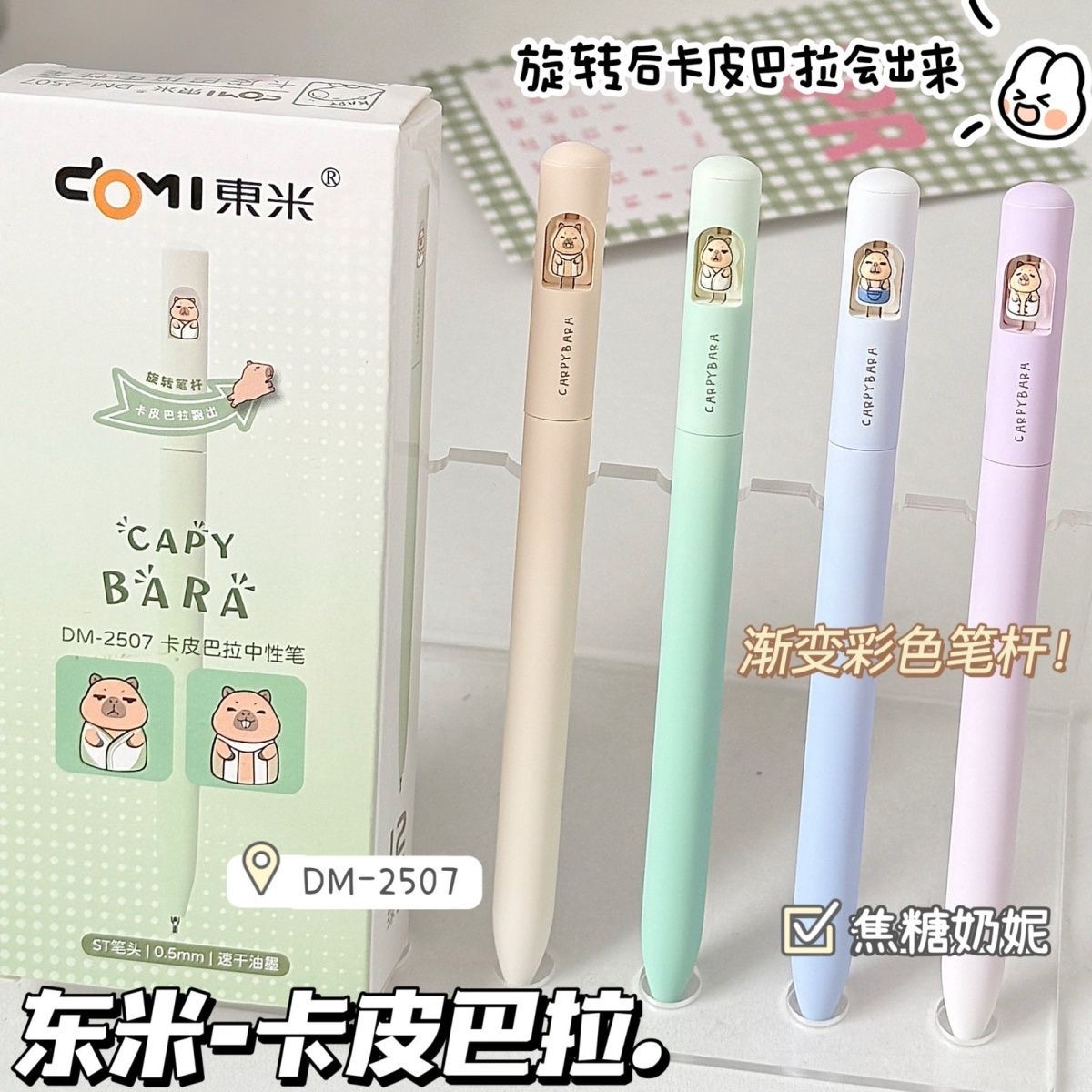 东米2507卡皮巴拉旋转中性笔高颜值ins风速干黑色水笔小学生专用