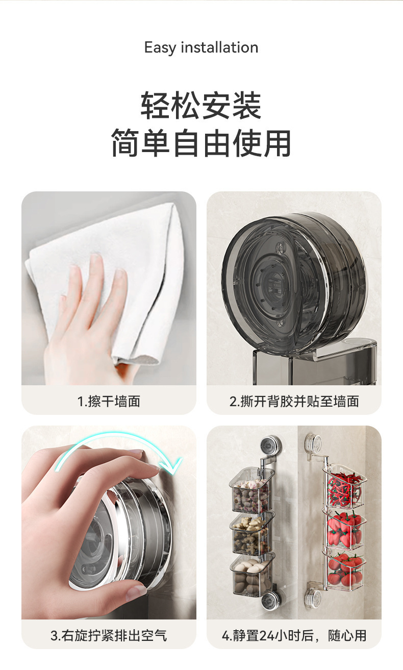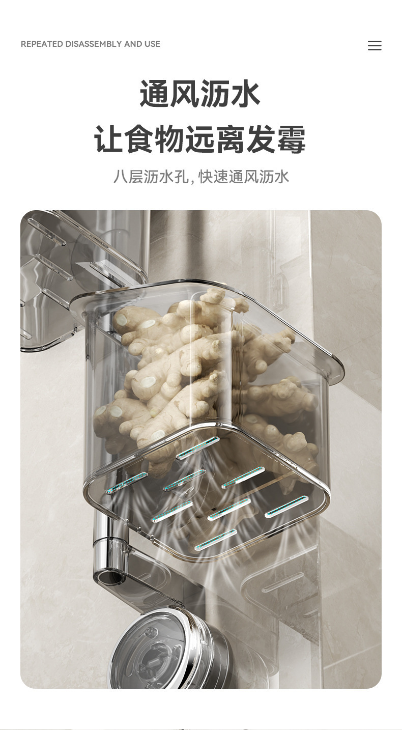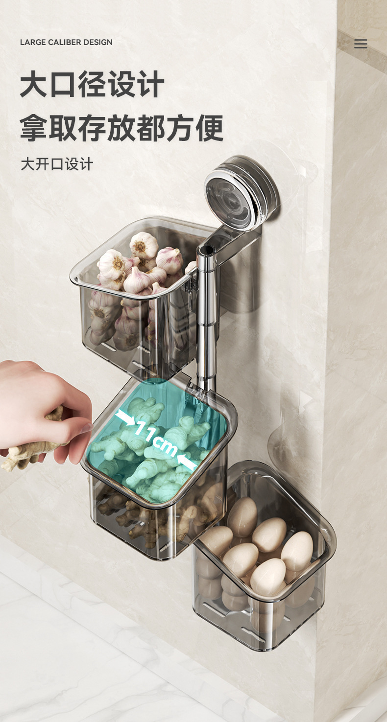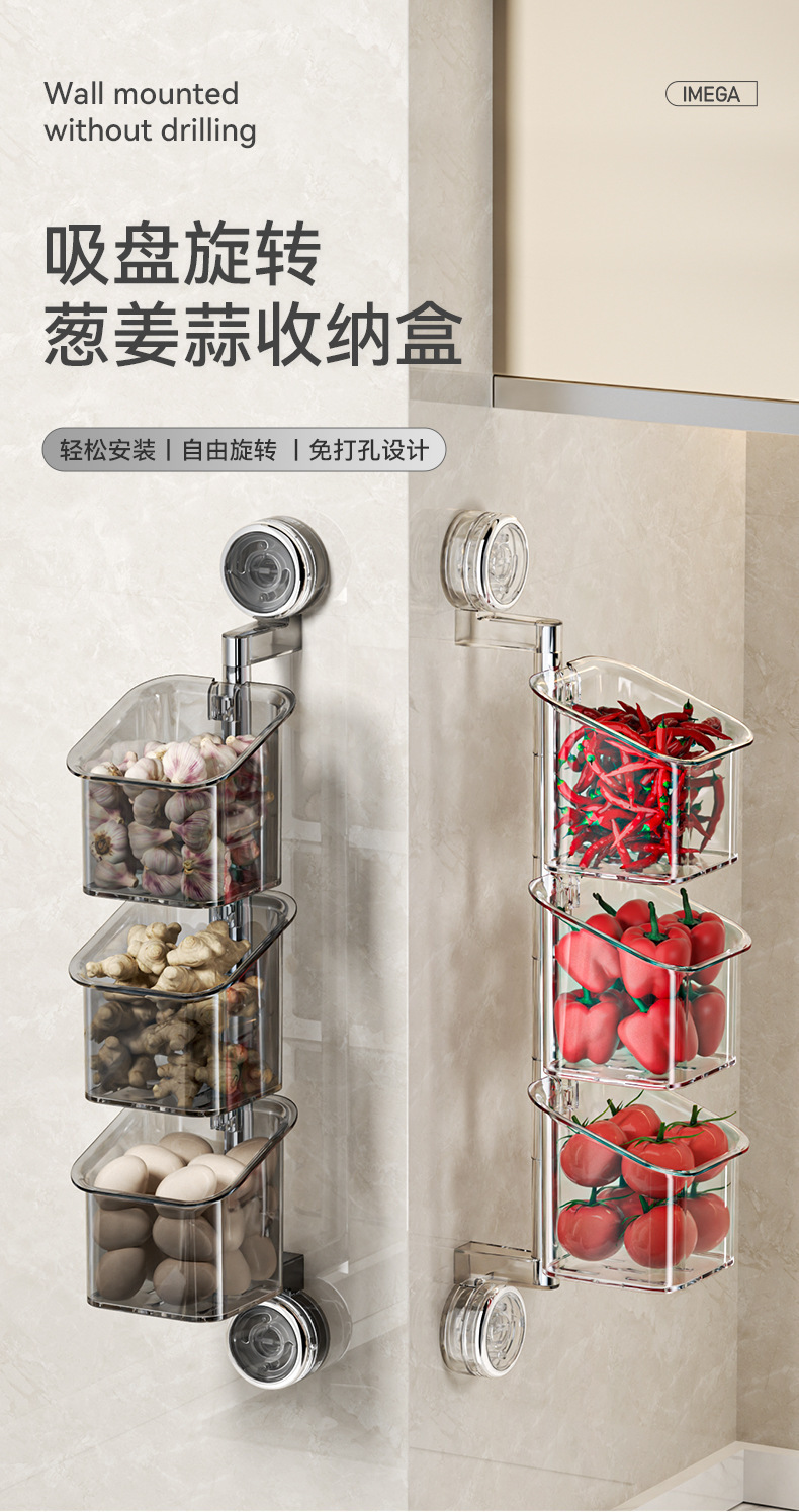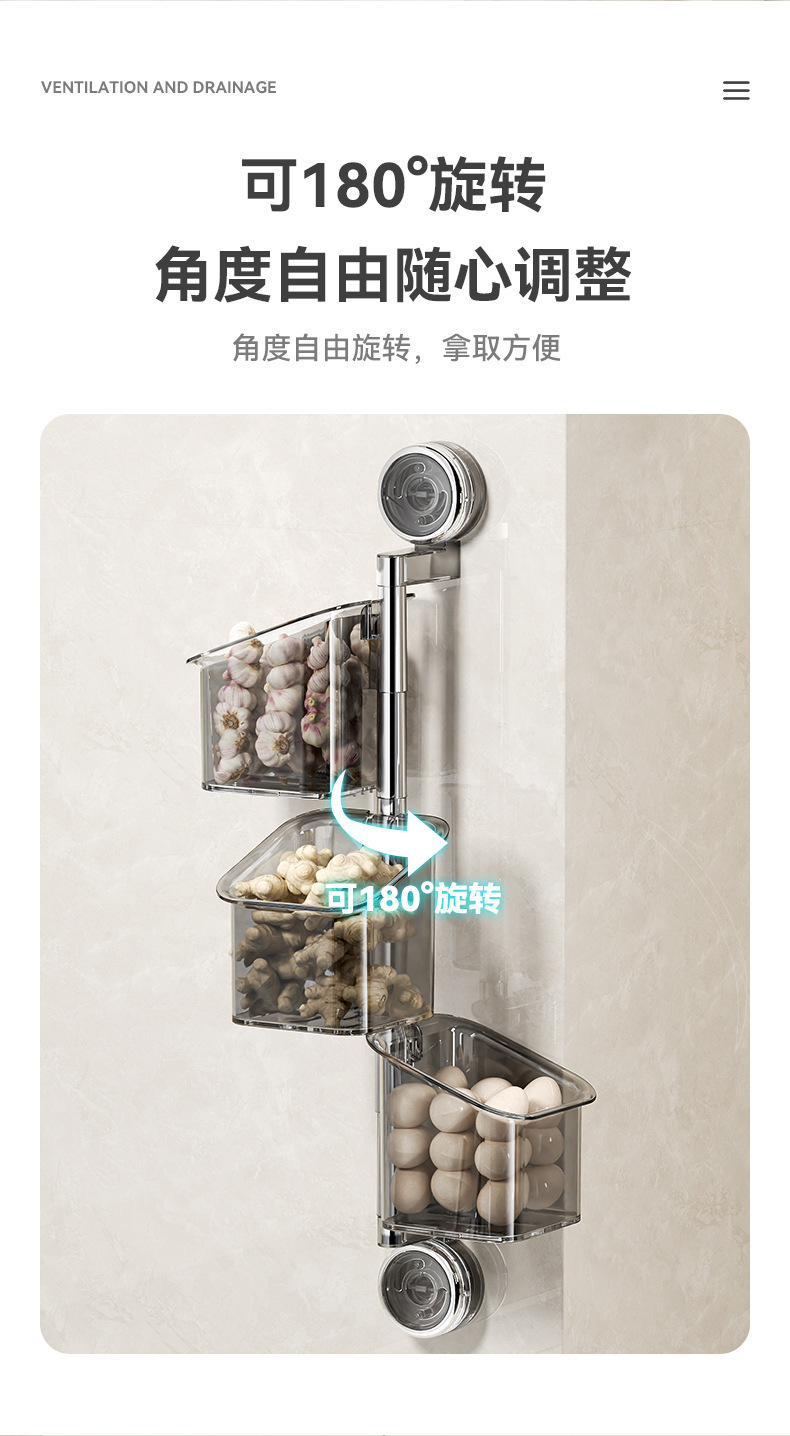 葱姜蒜厨房收纳盒吸盘式置物架生姜大蒜调料收纳筐免打孔墙上挂篮